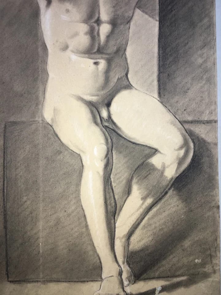 Studio Accademico Di Nudo Maschile: Disegni Fronte Retro Del XIX Secolo