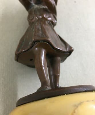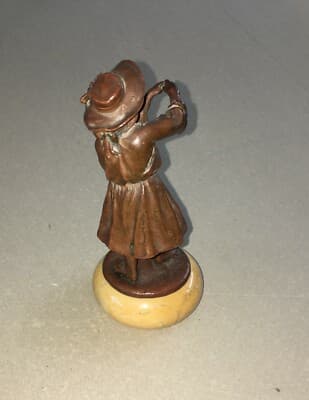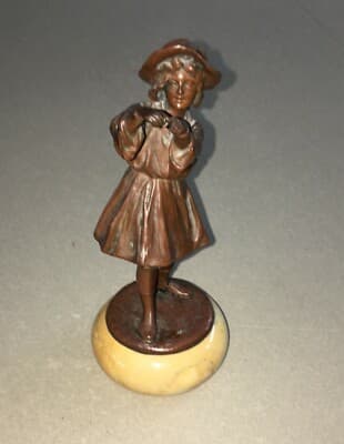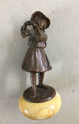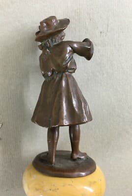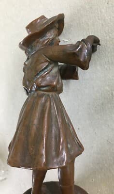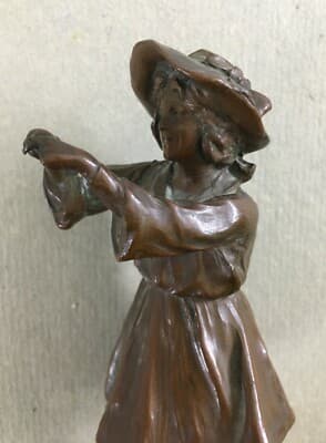 Scultura In Metallo Bronzato Raffigurante Giovane Donna Con Cappello