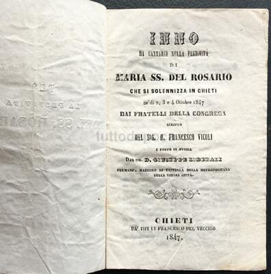 Chieti (Abruzzo): Inno Devozionale Per La Festa Del Rosario Francesco Vicoli E Giuseppe Liberali (1847)