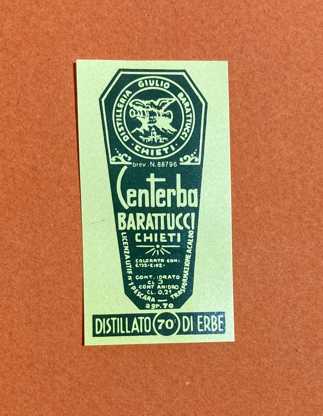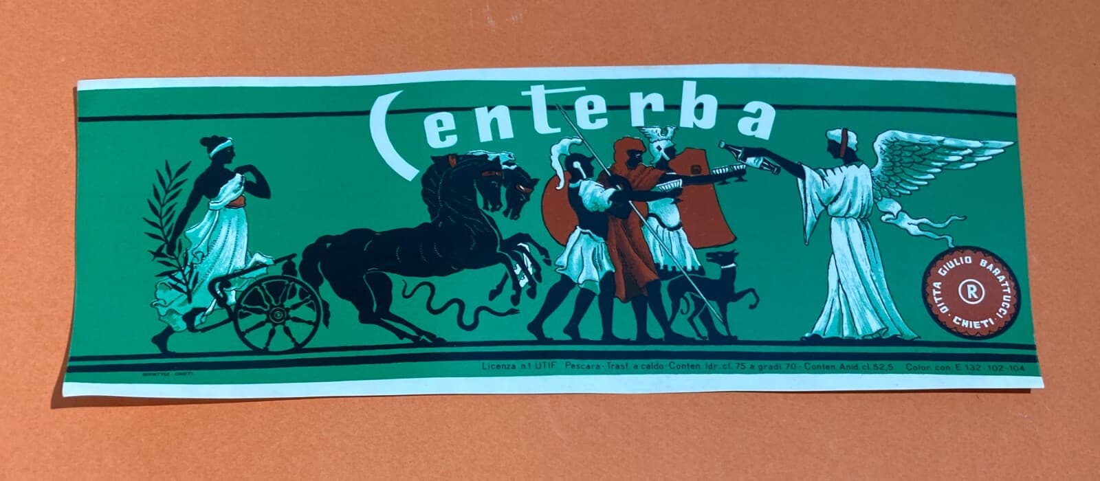 Abruzzo, Chieti: Distilleria Barattucci, Etichetta Originale Amaro Centerba