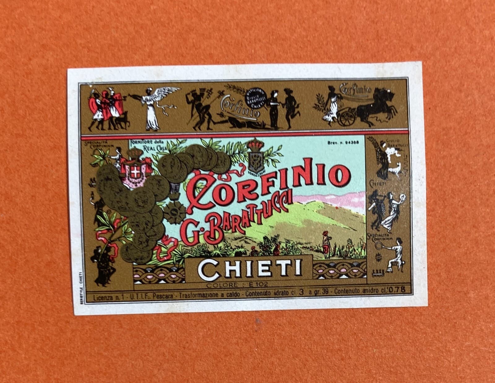 Abruzzo, Chieti, Liquori, Distilleria Barattucci: Etichetta Originale Corfinio