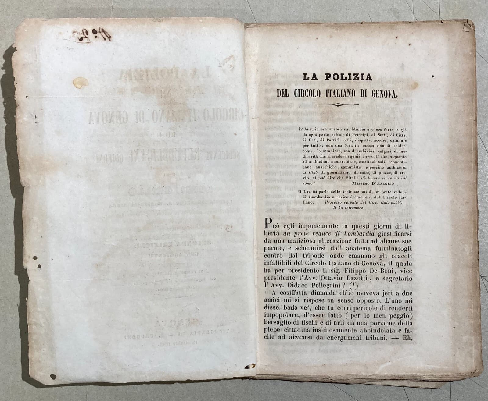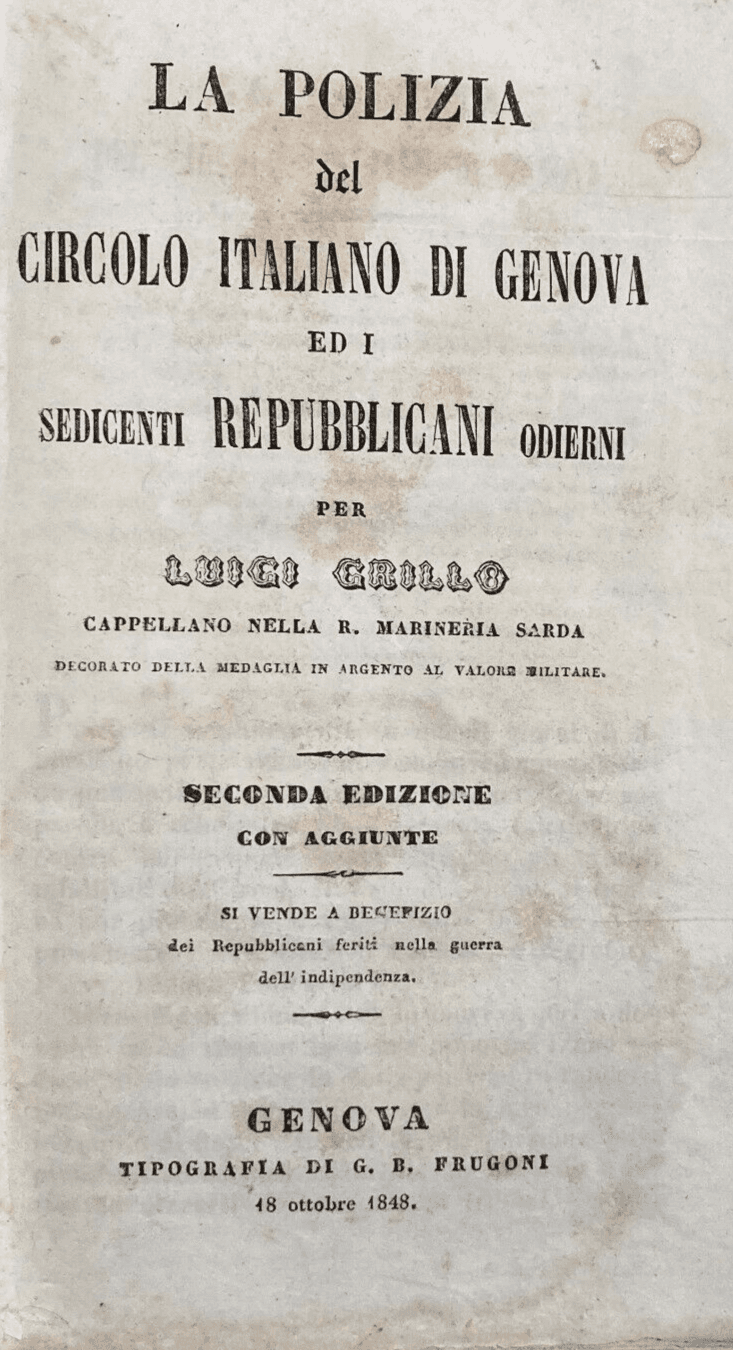 Liguria, Genova, Risorgimento: Circolo Italiano, Luigi Grillo, Fusinato, 1848 Rarità