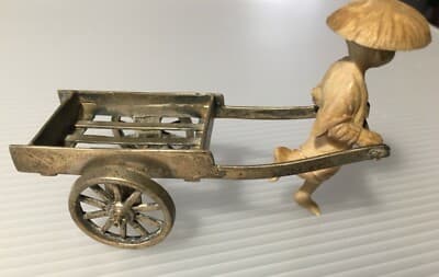 Soprammobile Decorativo: Cinese Con Carretto In Argento E Osso