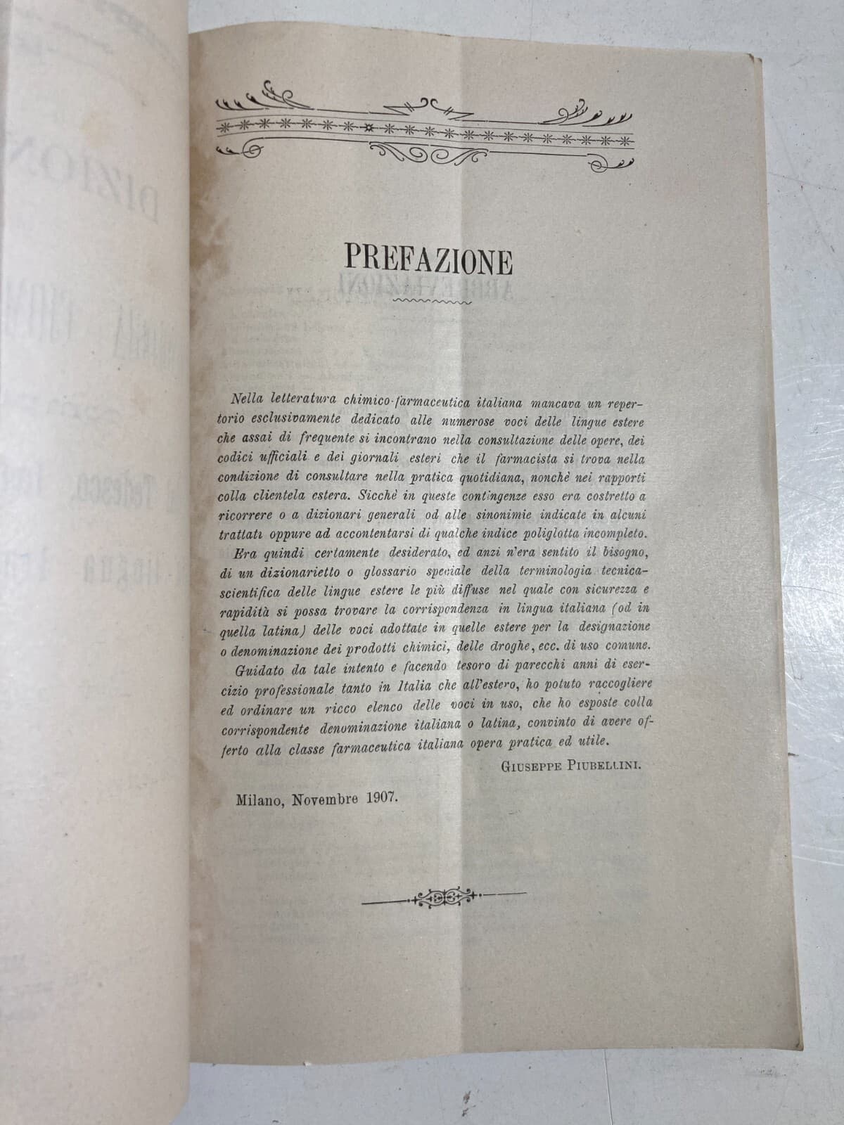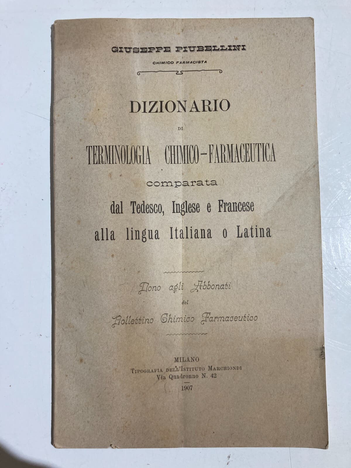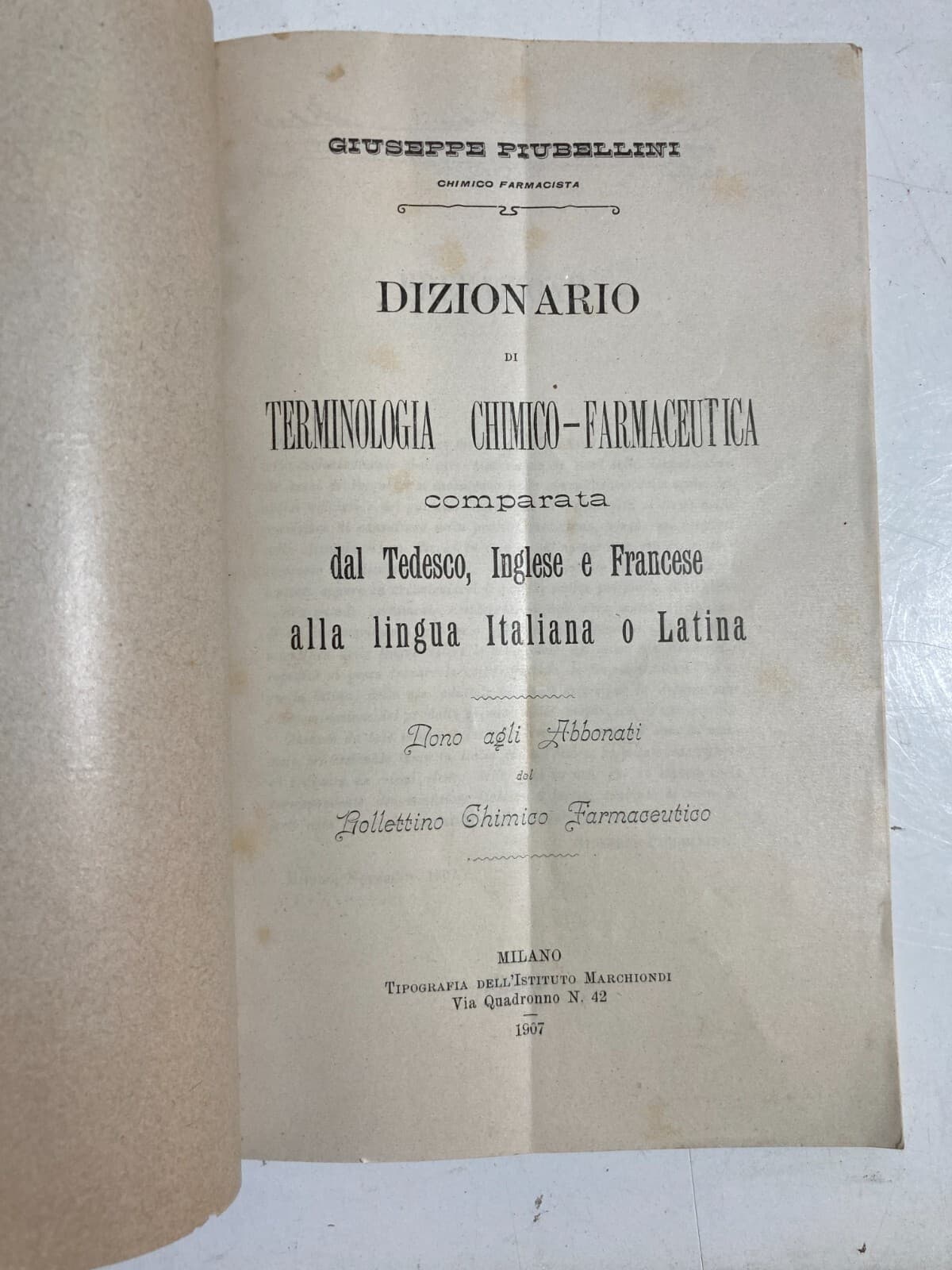 Medicina, Farmacia, Chimica Farmaceutica: Dizionario Piubellini, Milano, 1907