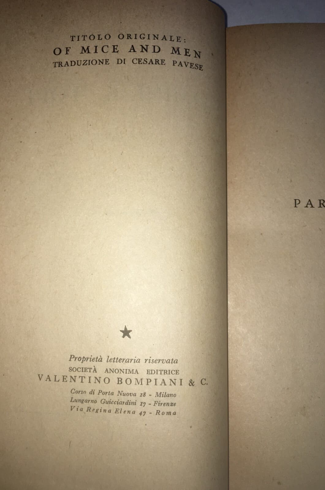 Steinbeck Uomini E Topi Edizione 1945 Copertine Di Vellani Marchi E Bernard
