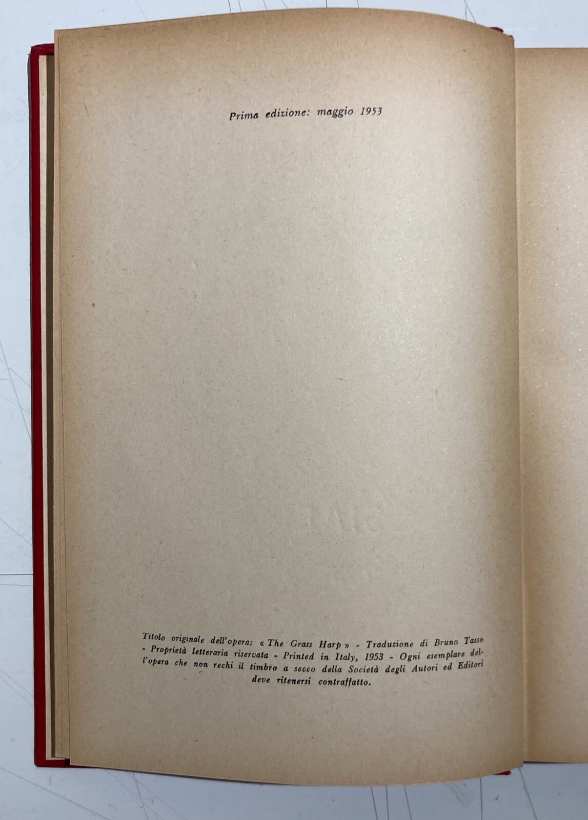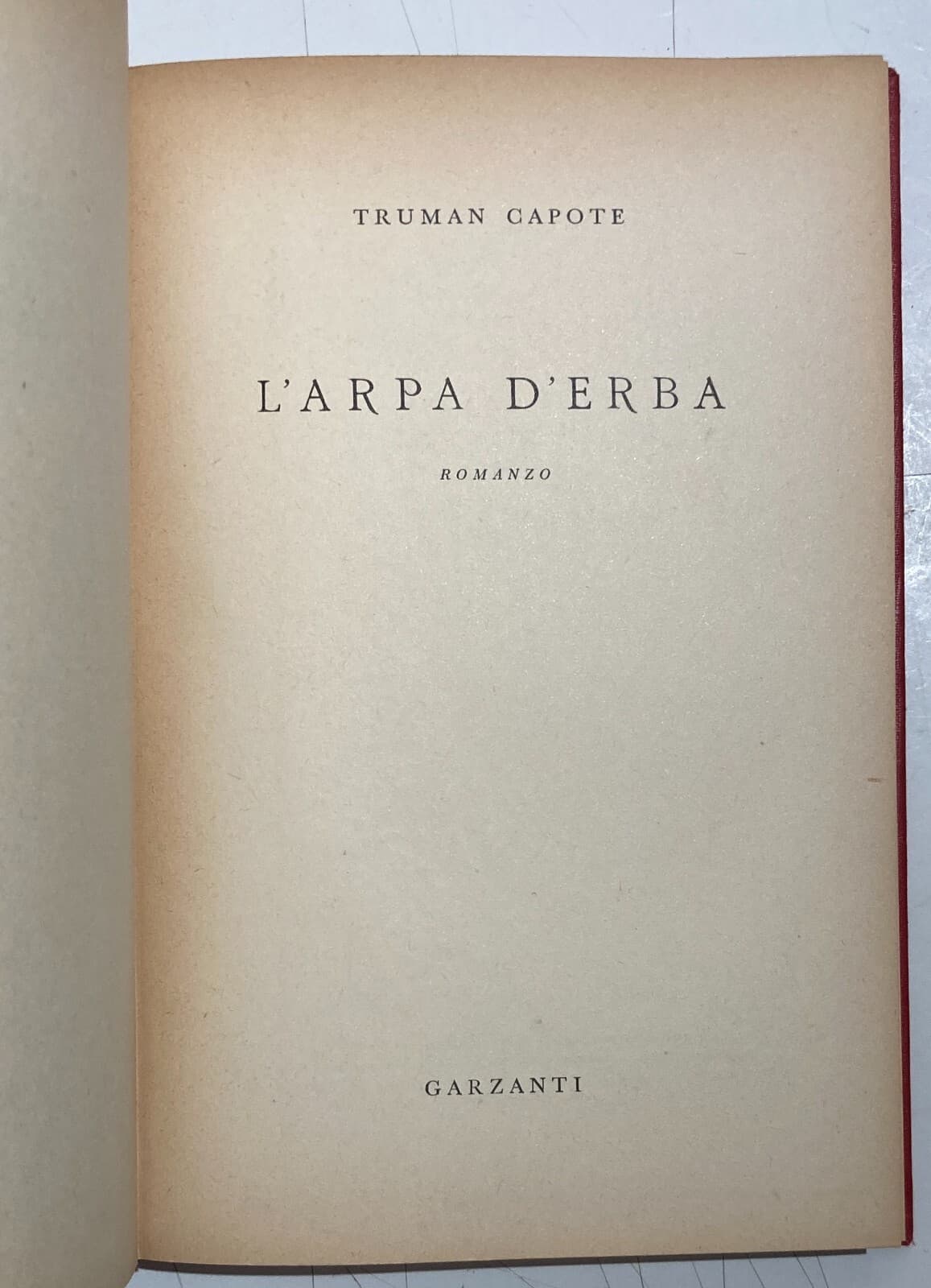 Truman Capote, L'Arpa d'Erba. Prima Edizione Italiana, Garzanti, 1953