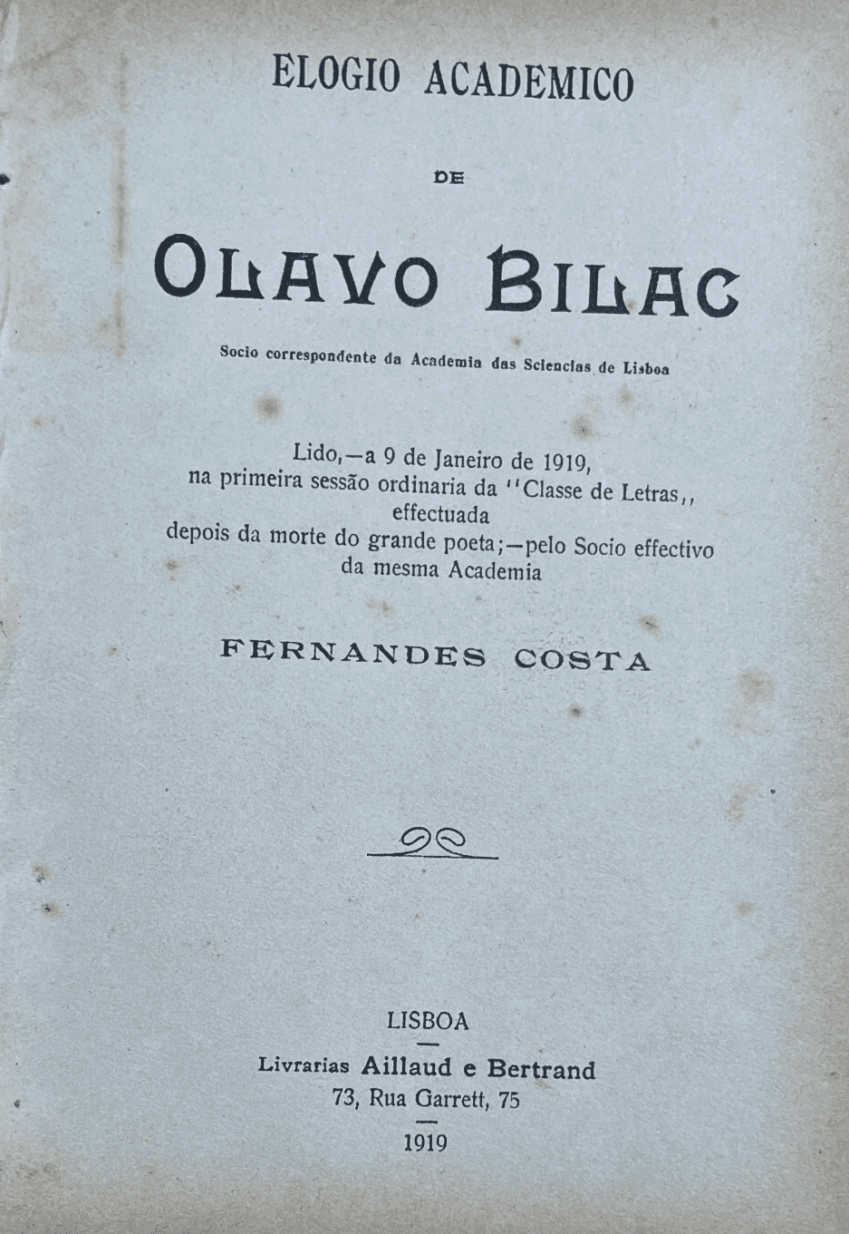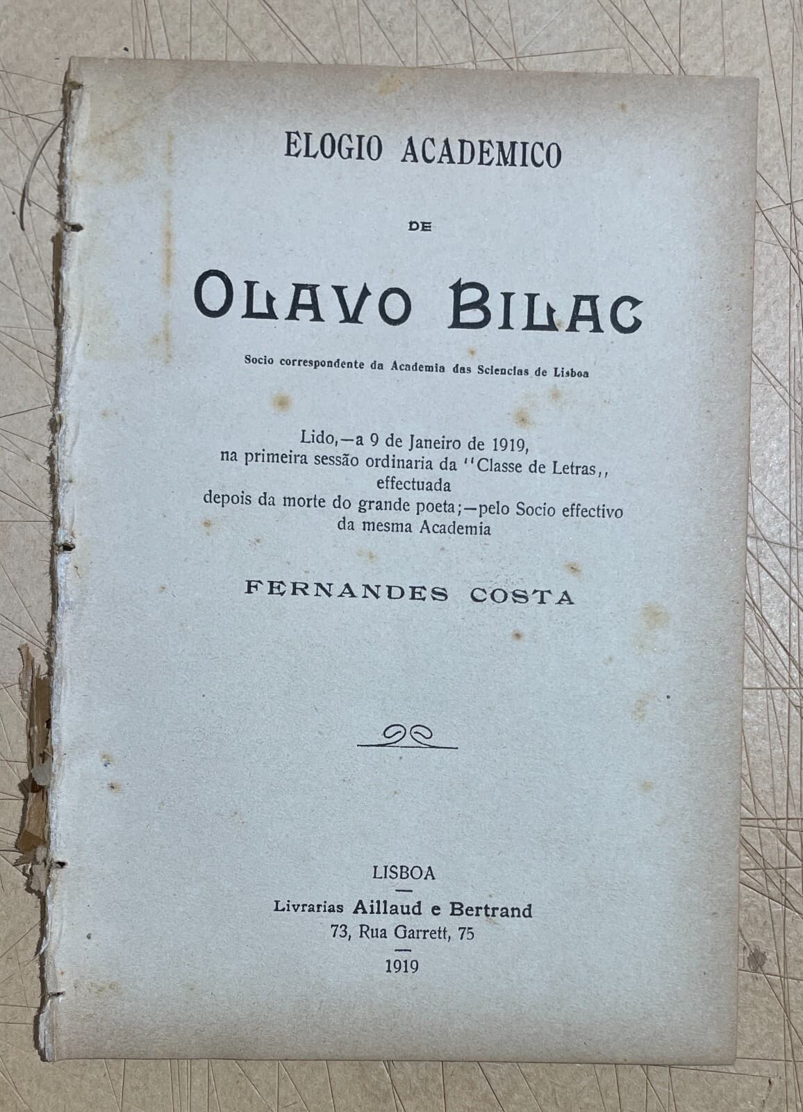 Letteratura Brasiliana, Olavo Bilac, Antica Edizione, Fernandes Costa, 1919