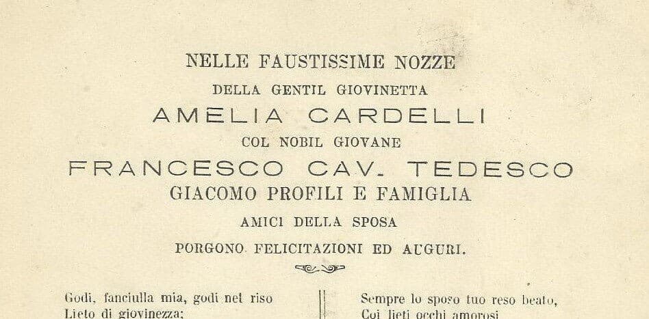 Umbria, Spoleto: Nozze Cardelli Tedesco. Biglietto Augurale Profili, Bossi. Antico.
