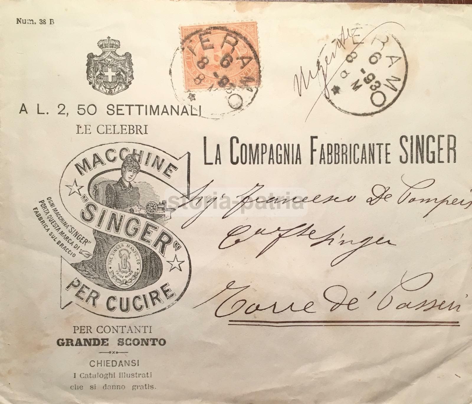 Macchine Per Cucire Singer, Busta Pubblicitaria d'Epoca, Teramo (Abruzzo)