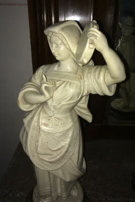 Scultura In Metallo Bronzato Raffigurante Giovane Donna Con Cappello