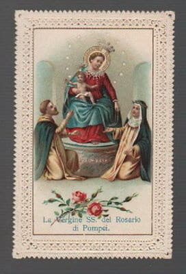 Pompei, Madonna Del Rosario: Antico Santino Merlettato Artistico