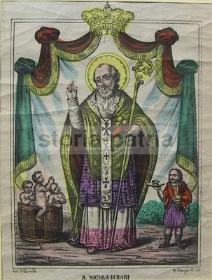 Puglia, Bari. Antica Stampa Popolare Devozionale: San Nicola. Litografia Apicella