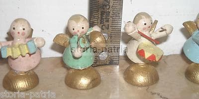 Sei Mini Angioletti Musicanti In Legno Laccato