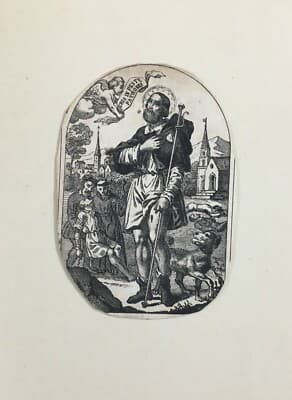 Stampa Popolare Devozionale: San Rocco. Antica Litografia Con Inusuale Iconografia, XIX Secolo.