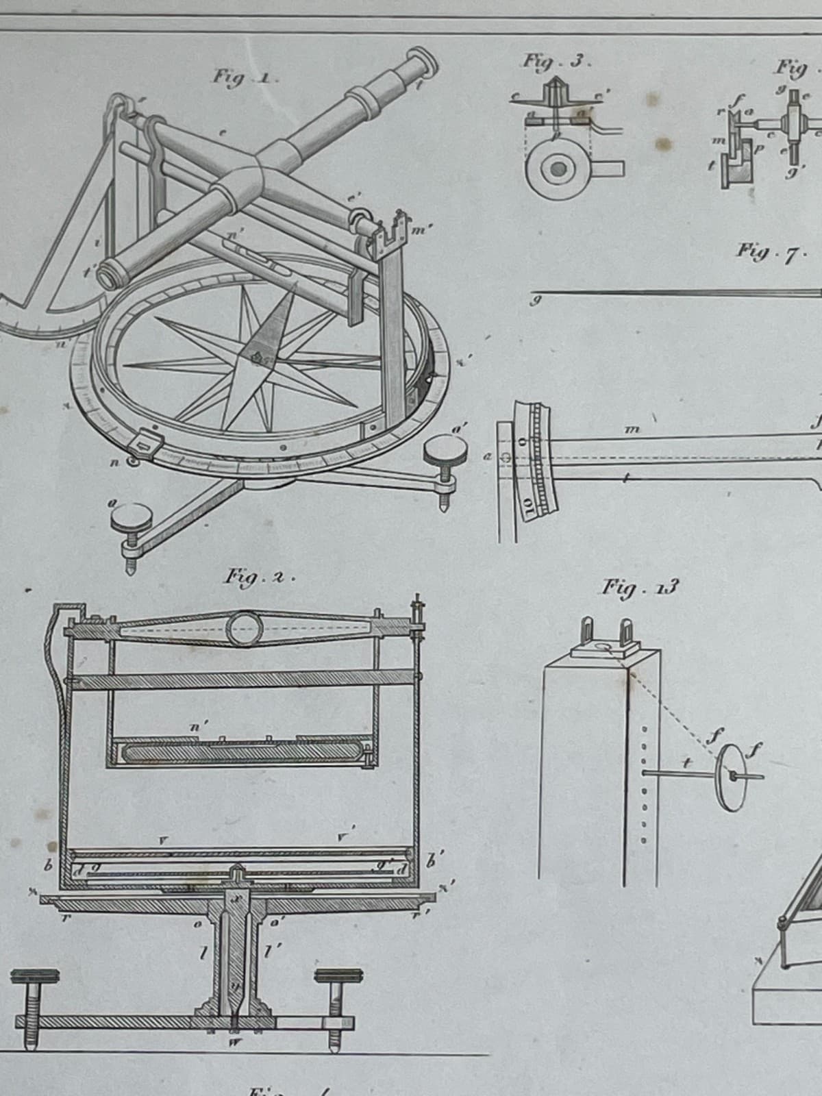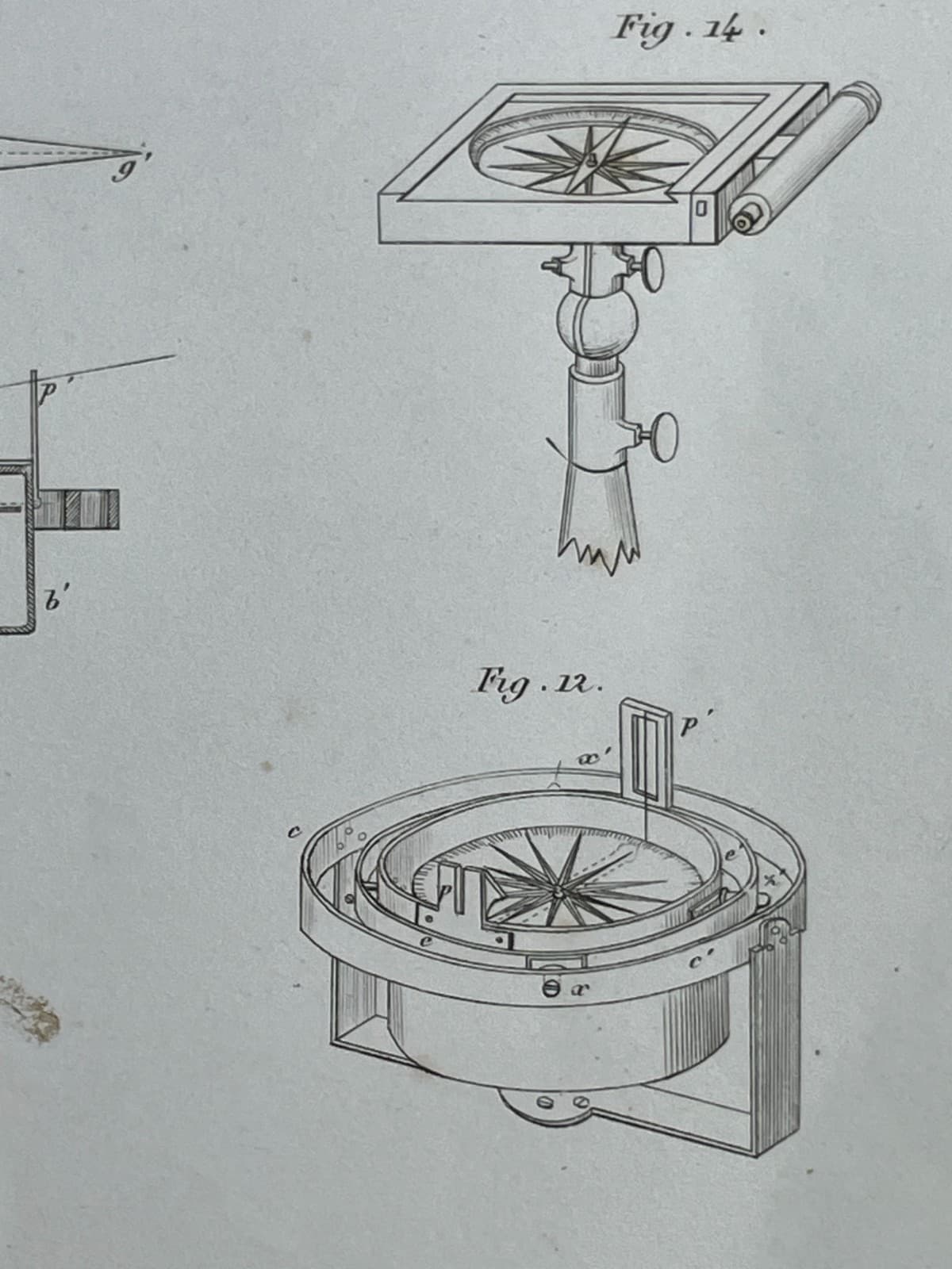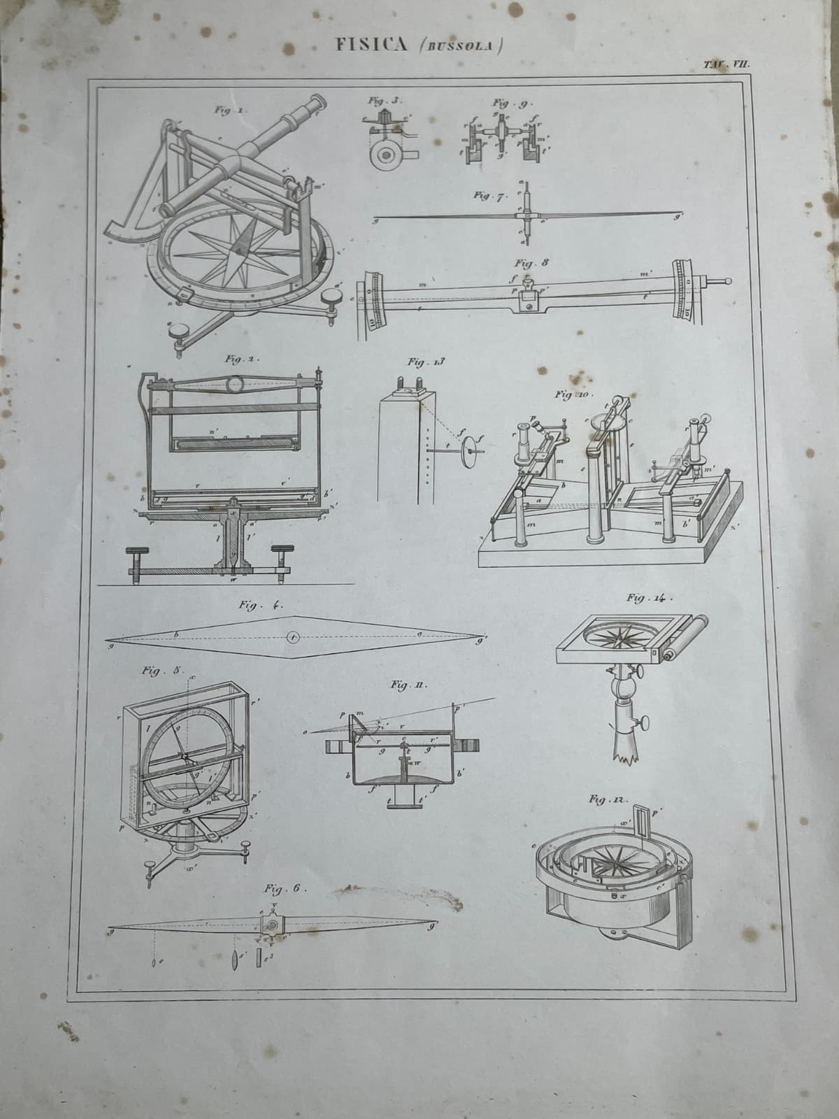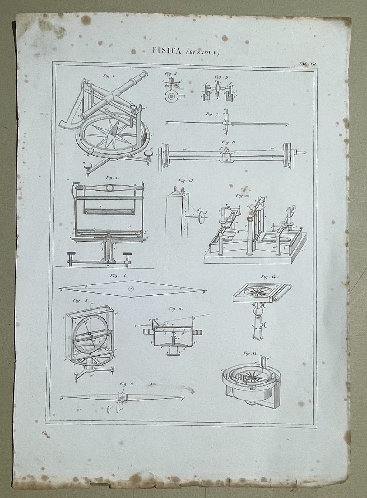 Fisica, Tecnica, Antica Strumentazione Scientifica, Bussola, Stampa Dell'Ottocento