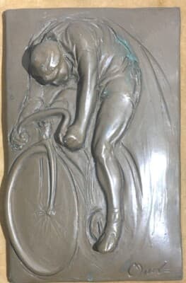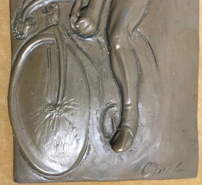 Sport, Ciclismo, Biciclette, Arte: Artista Scultore Morel, Placca Artistica d'Epoca