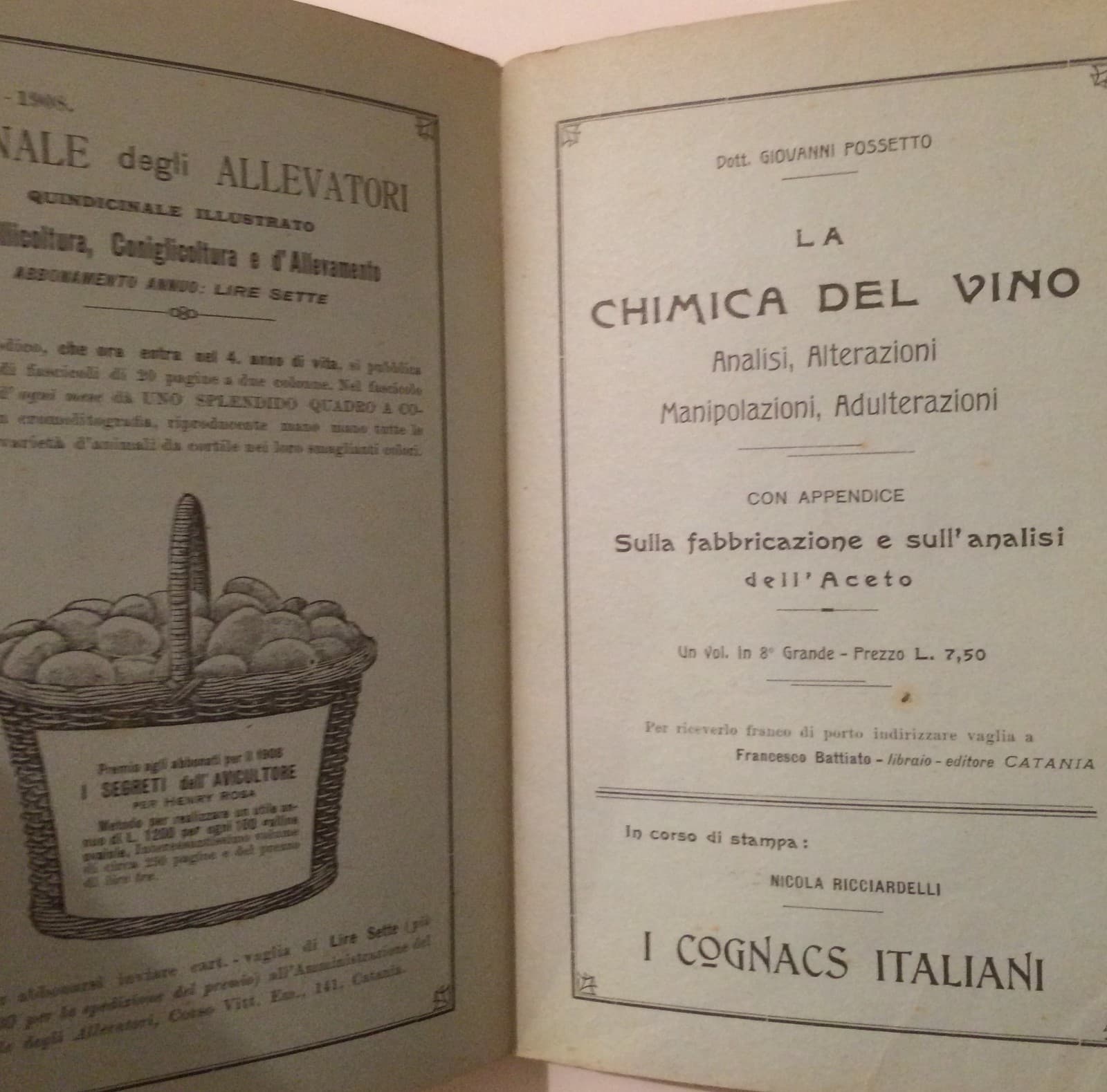 Enologia, Cantina, Botti, Vini, Solfiti, Chimica: Vinificazione Meridionale, 1919