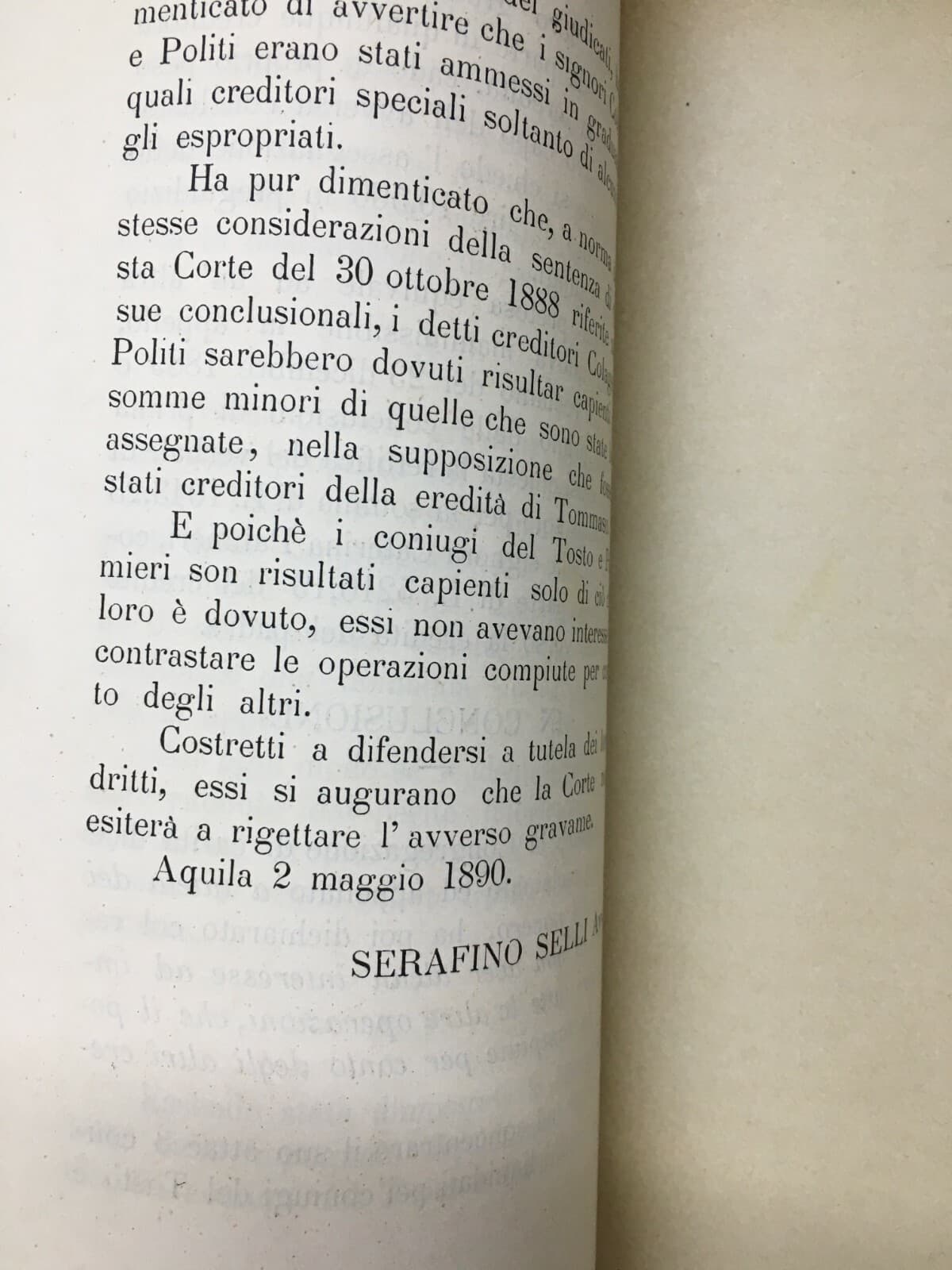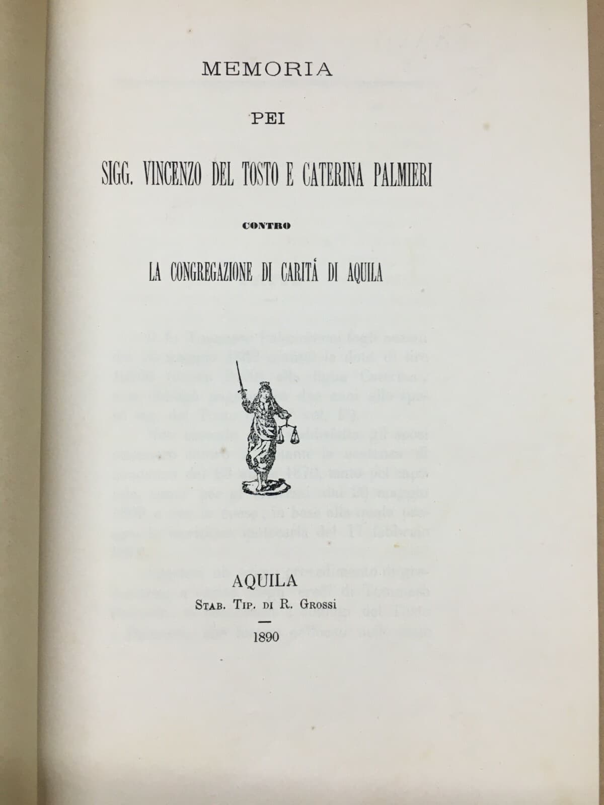 Abruzzo, L'Aquila Allegazione Giuridica: Del Tosto, Palmieri, Congregazione Di Carità