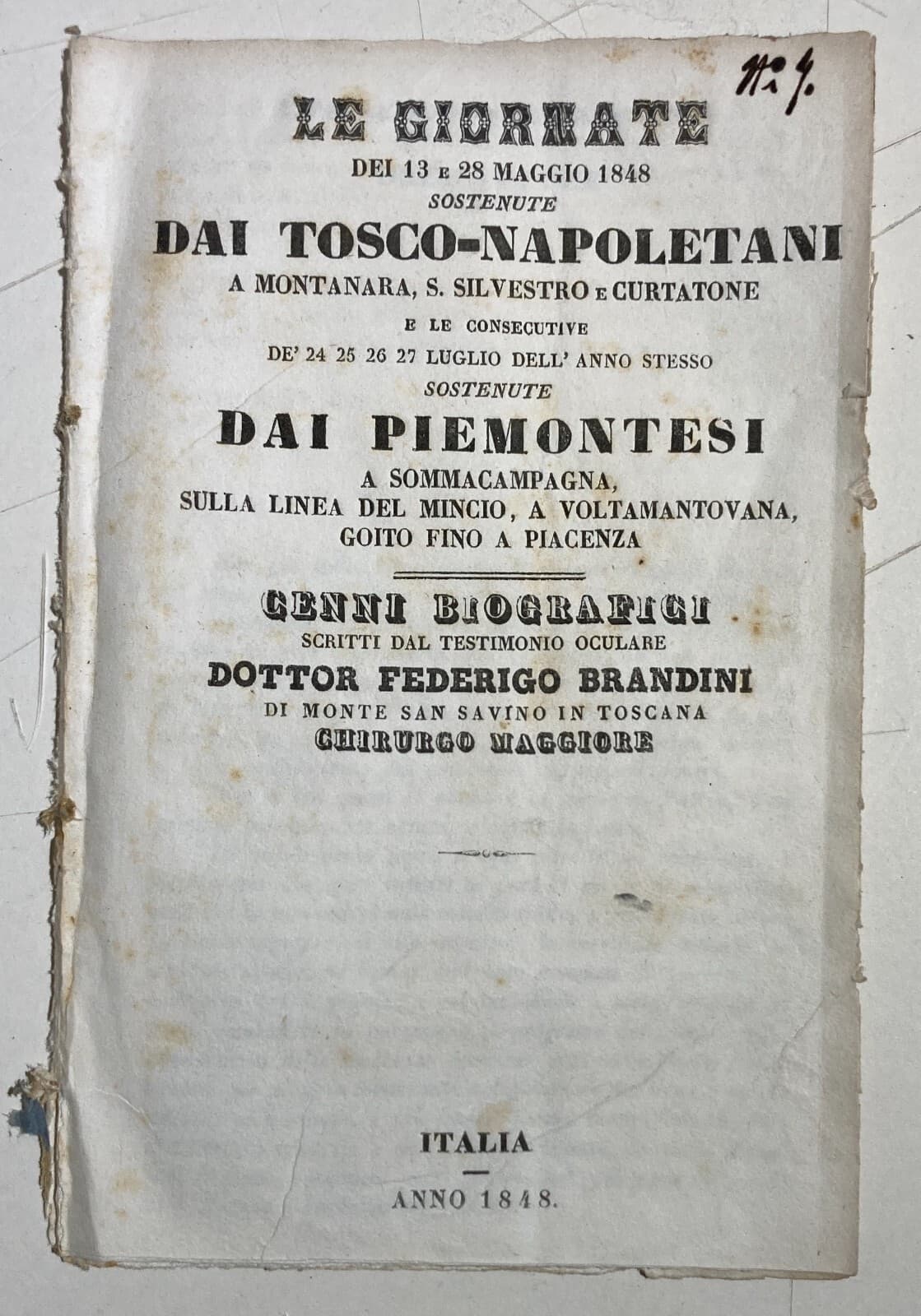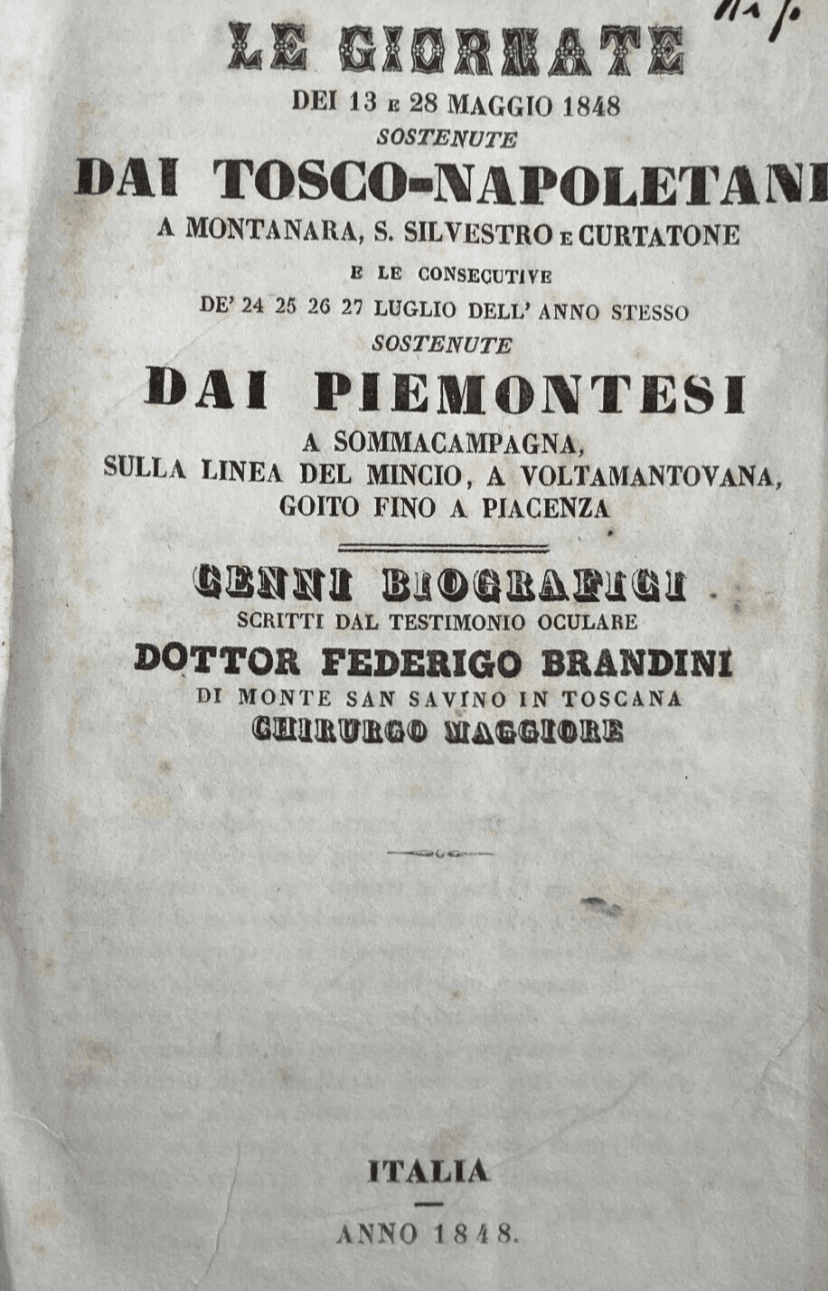 Risorgimento, Militaria, Conflitti Bellici 1848: Toscana, Piemonte, Napoli Federigo Brandini