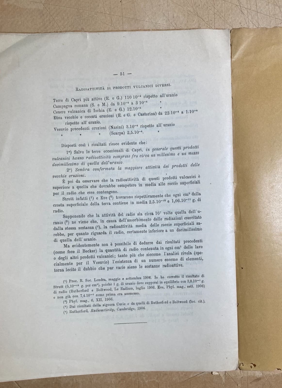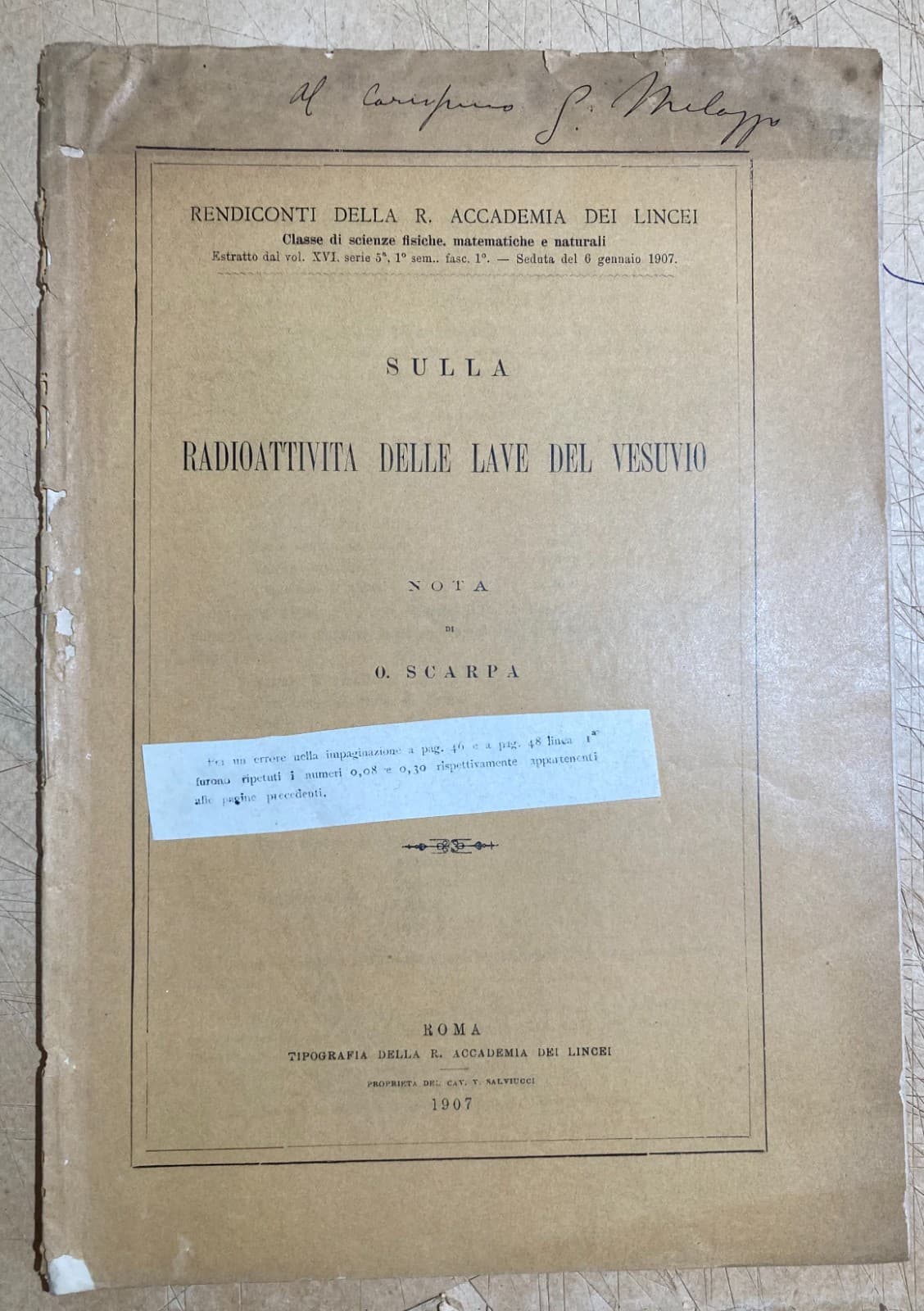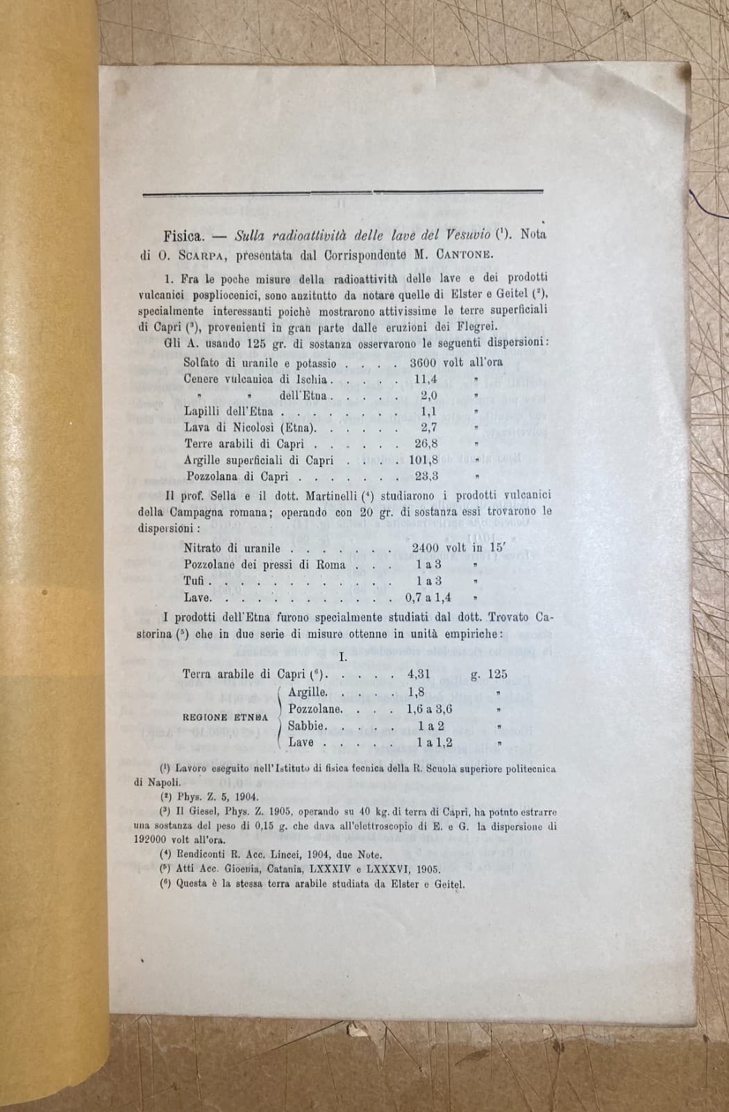 Fisica, Geologia E Radioattività Delle Lave Del Vesuvio Ed Etna. Relazione Di Oscar Scarpa, 1907