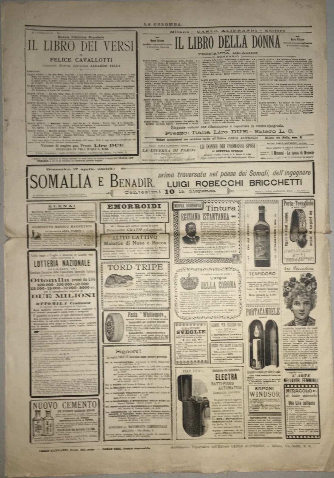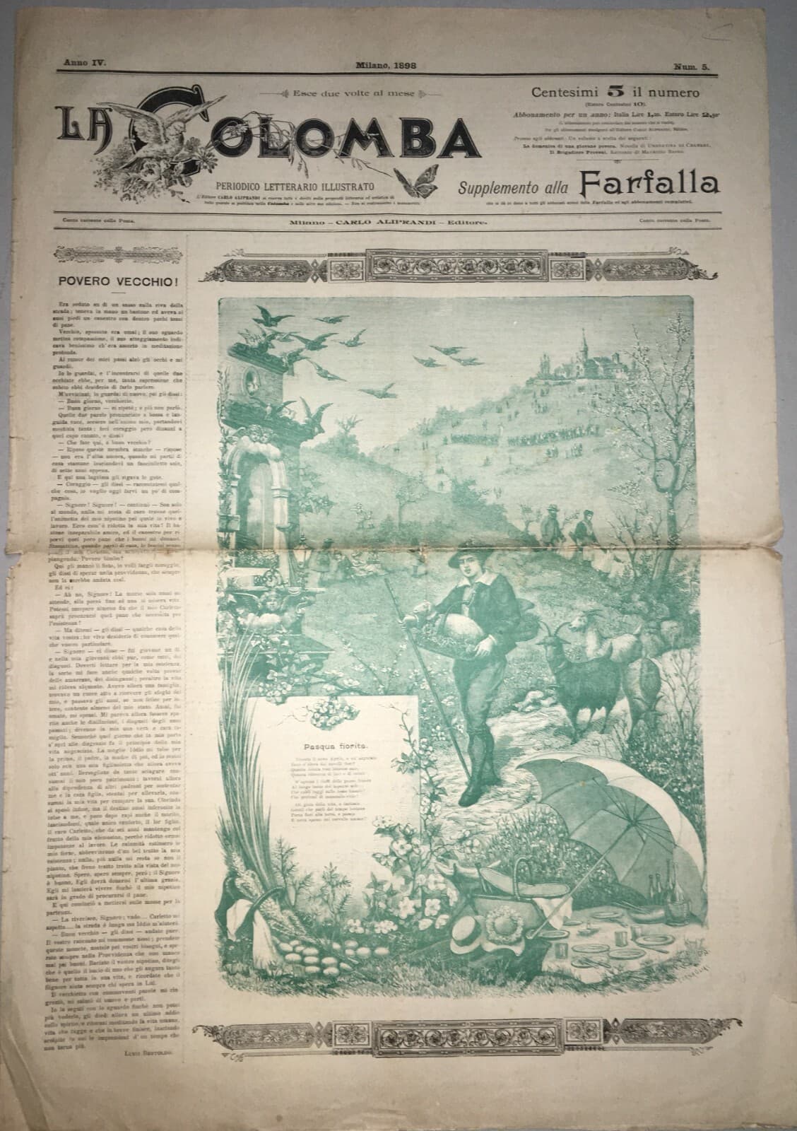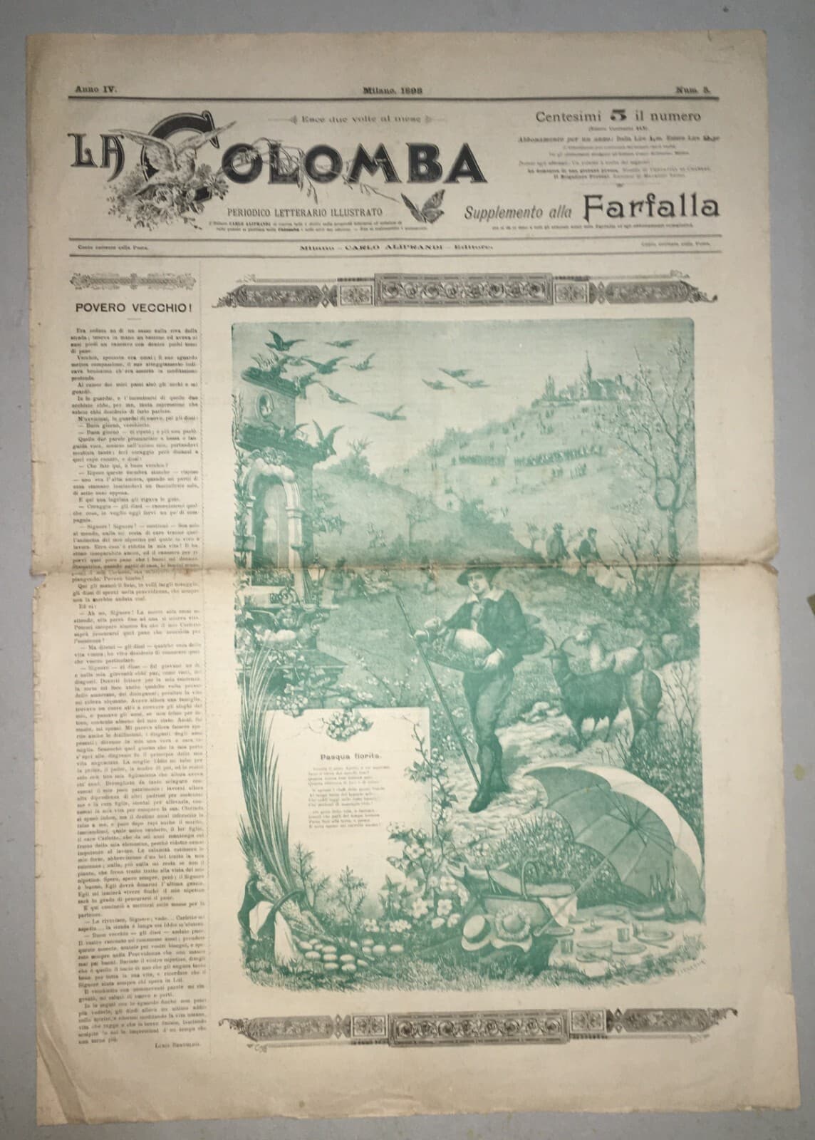 La Colomba Antico Giornale Di Milano Illustrato Pubblicitaria Napoli Pasqua 1898