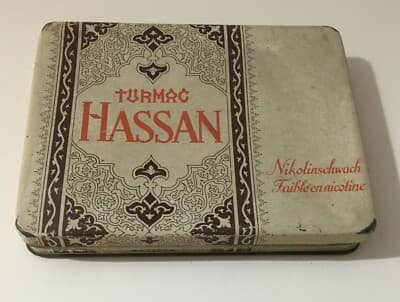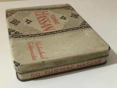 Scatola Di Latta Pubblicitaria Turmac Hassan Tabacco d'Oriente