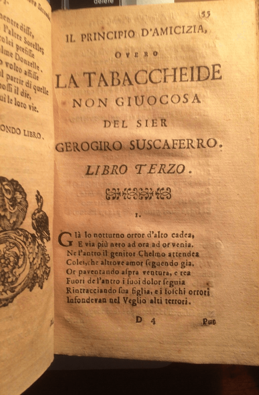 Tabacco: Rara Opera Satirica Di Gerogiro Suscaferro. Caracciolo Principe Di Torella, Spagna, 1694.