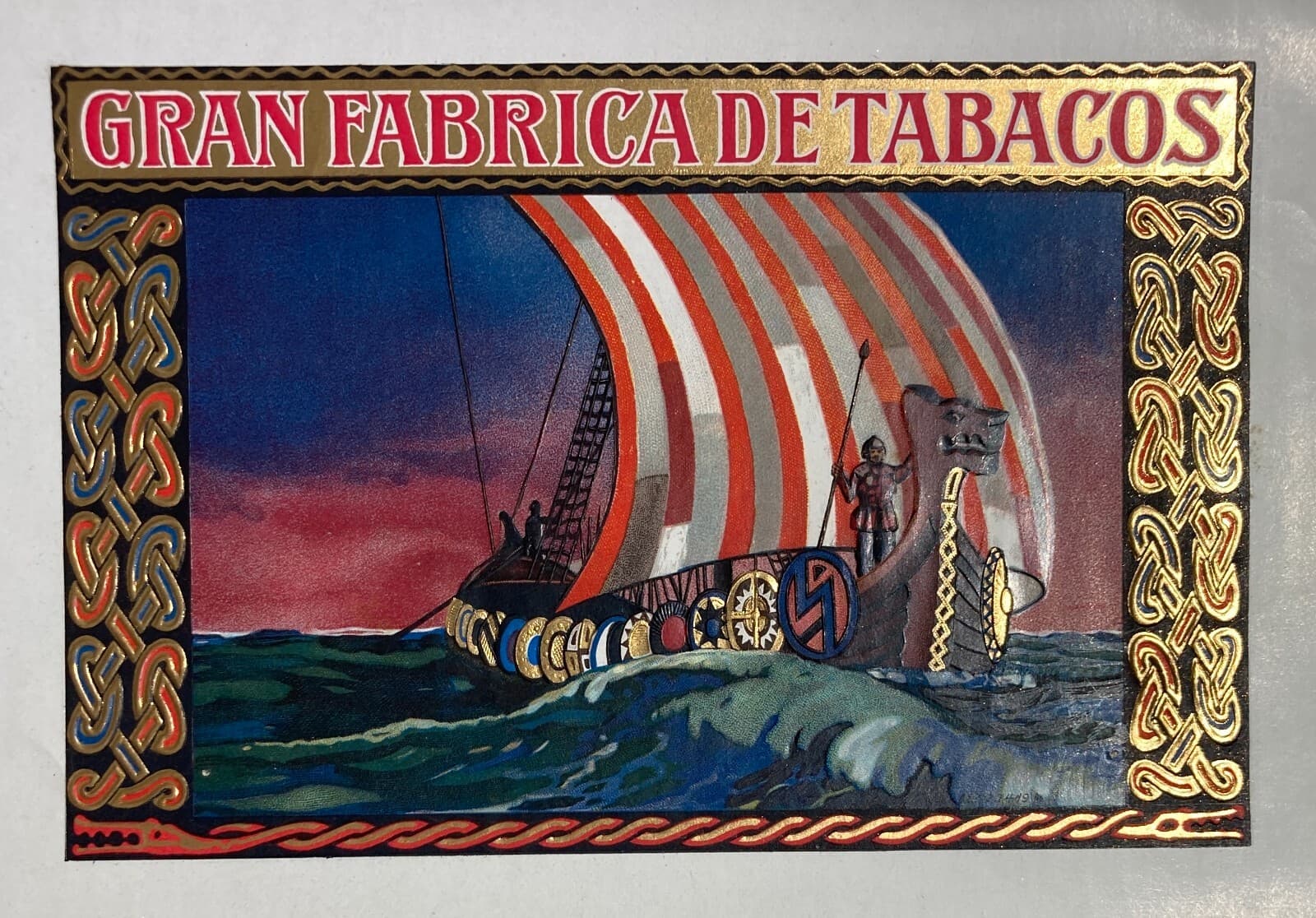 Tabacco, Fumo: Antica Stampa Pubblicitaria, Cromolitografia Con Dorature Veliero