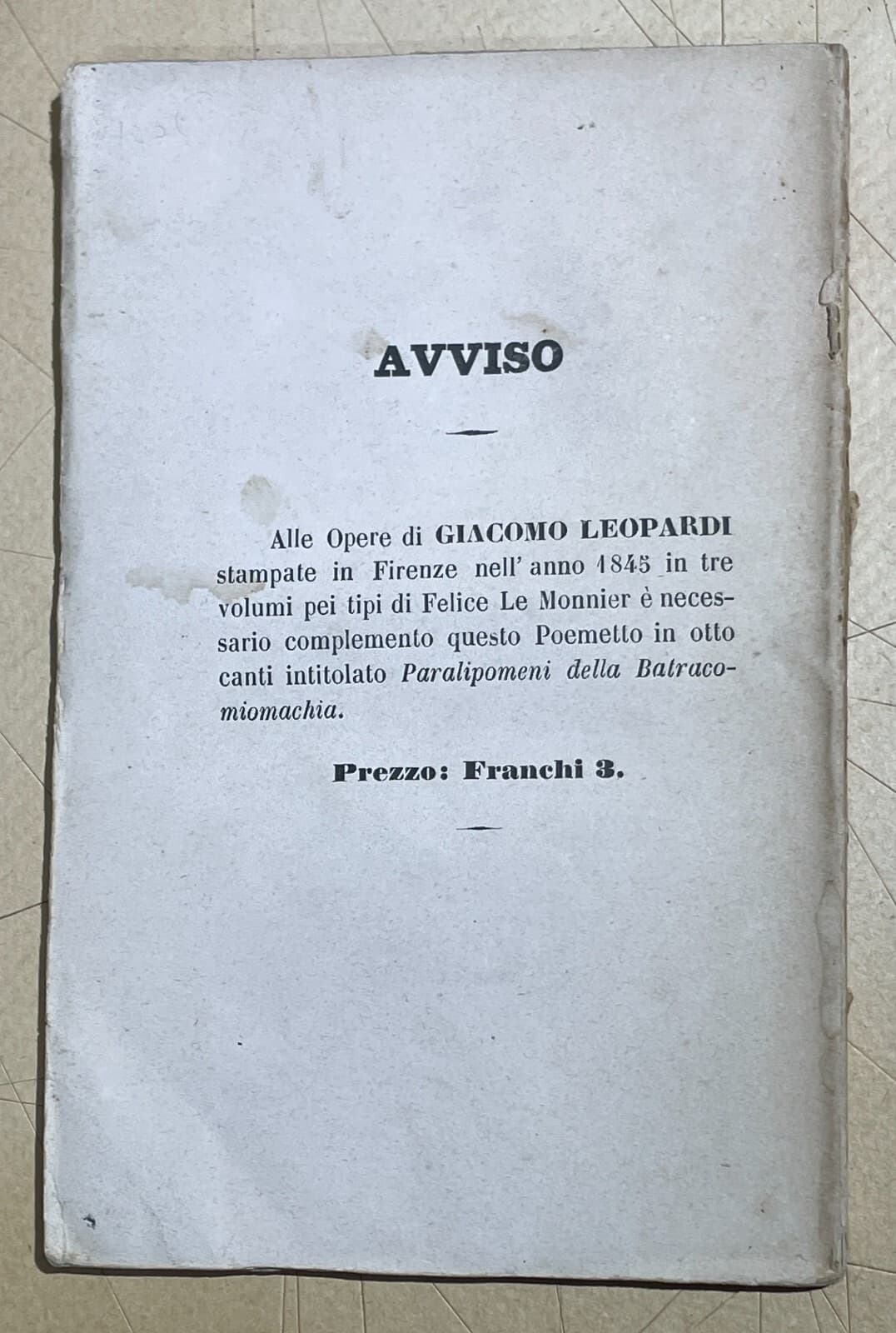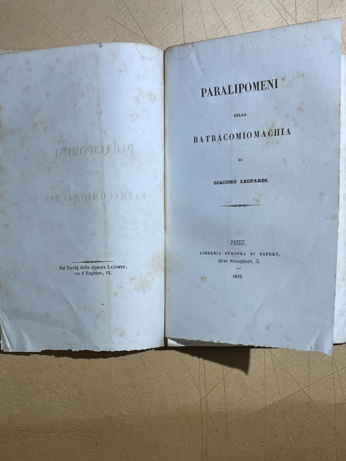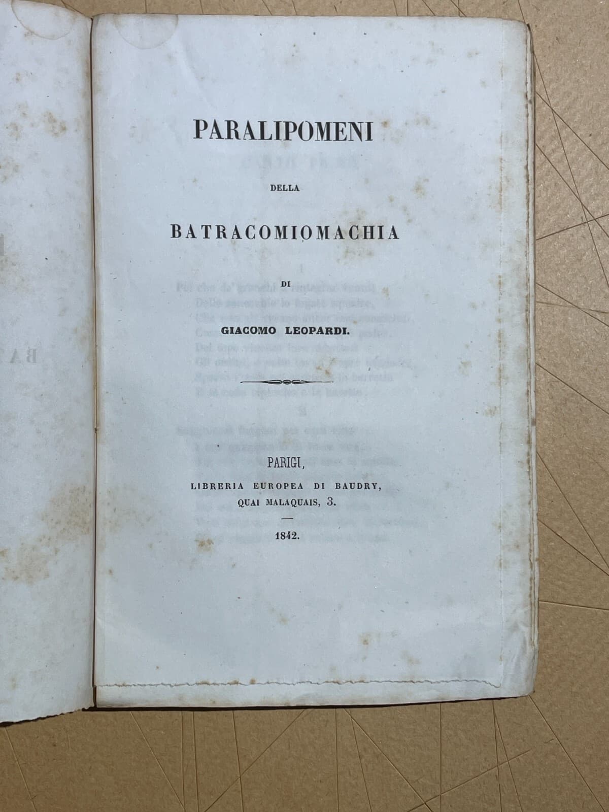 Giacomo Leopardi, Paralipomeni Della Batracomiomachia. Antica Edizione, 1842