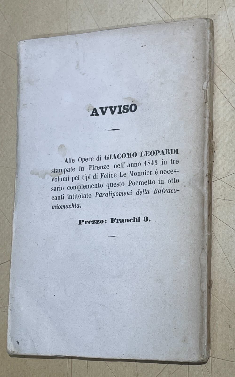 Opere Di Giacomo Leopardi, Firenze, Le Monnier, 1856