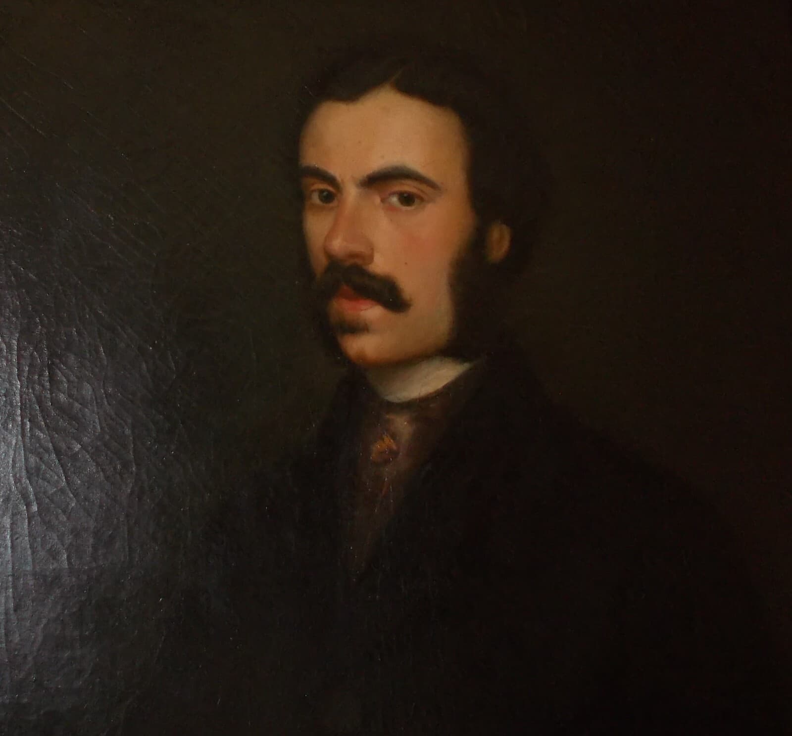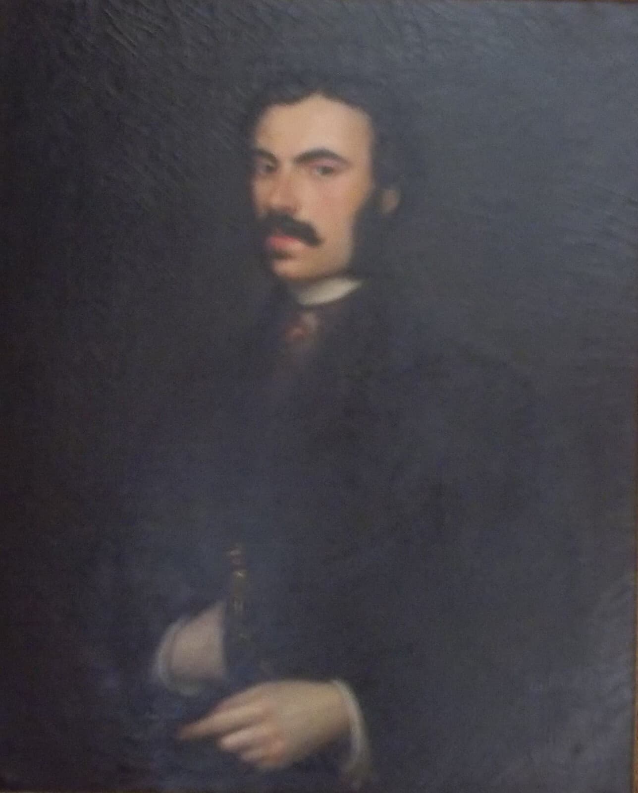 Arte: Pittura, Antico Ritratto Maschile. Uomo Con Baffi, Opera Firmata