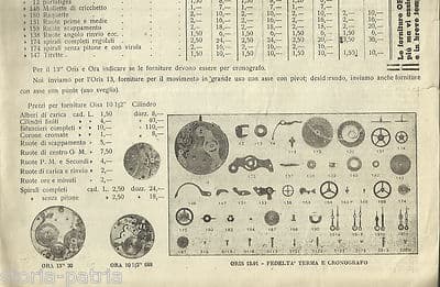 Calabria, Cosenza: Giuseppe Ambrosio, Forniture Per Orologiai. Listino Prezzi, 1942