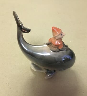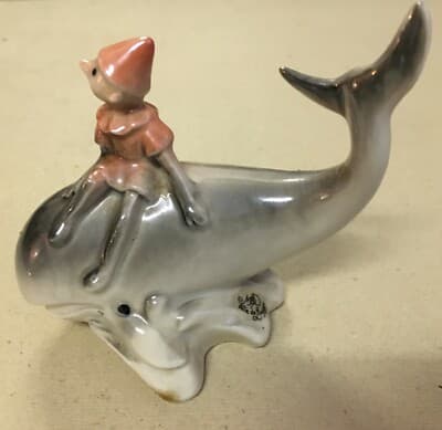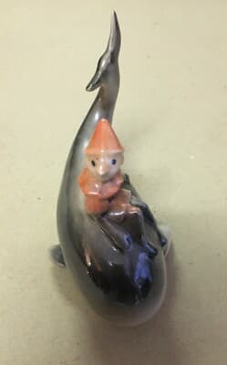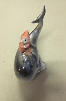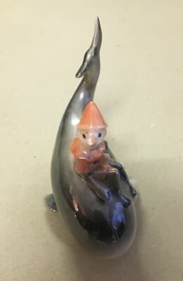 Pinocchio E La Balena, Scultura In Ceramica Di Limoges