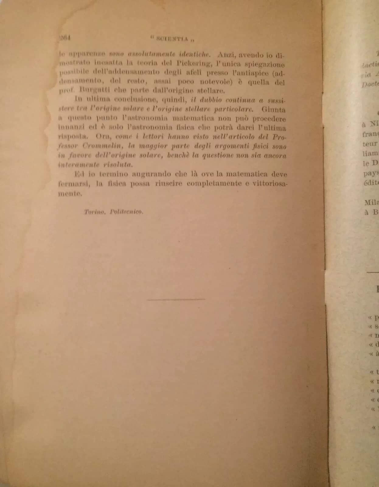 Astronomia, Fisica, Comete E Calcolo Delle Probabilità Armellini, Antico Estratto