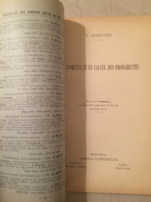 Astronomia, Fisica, Comete, Calcolo Delle Probabilità: Antico Estratto Di Armellini