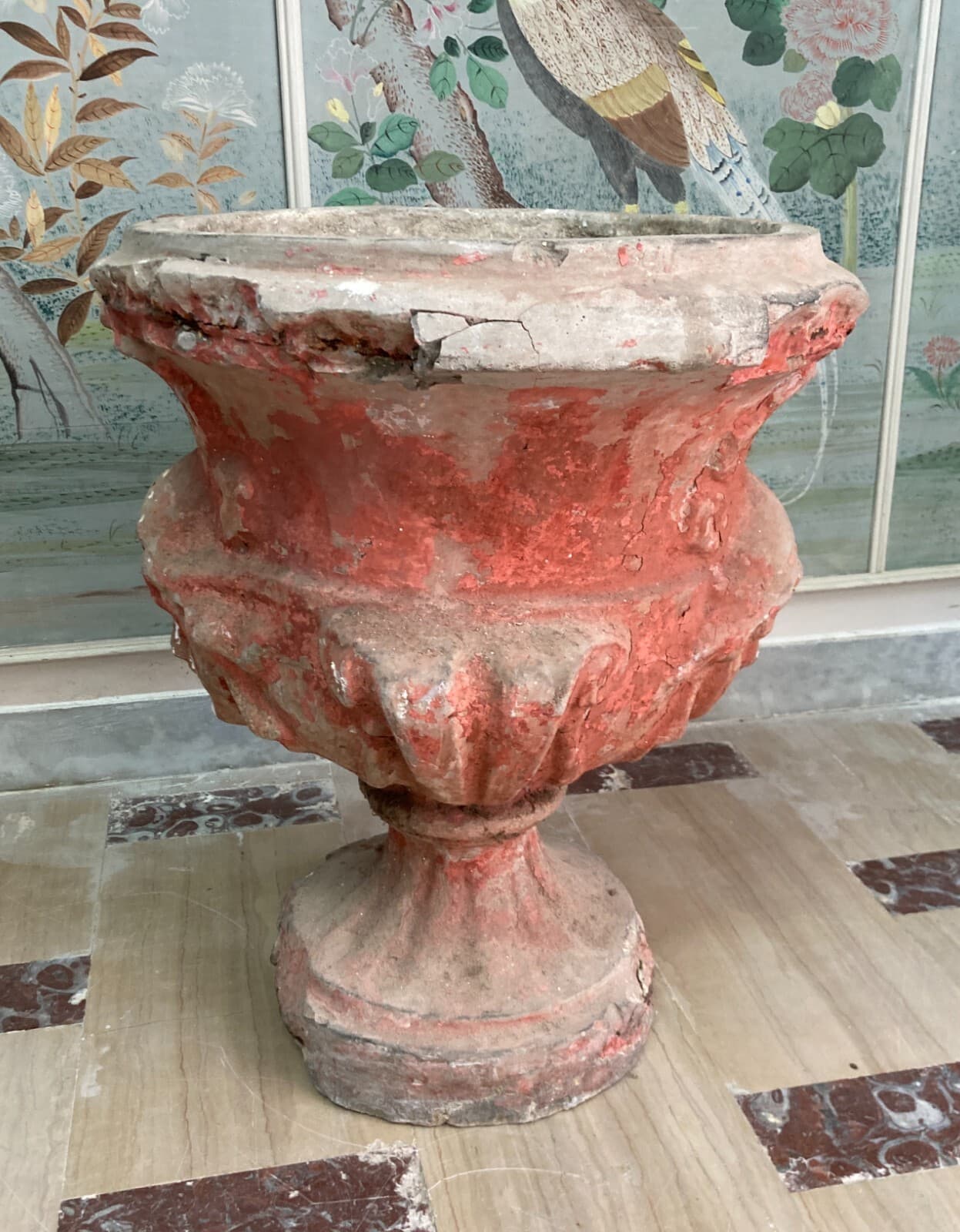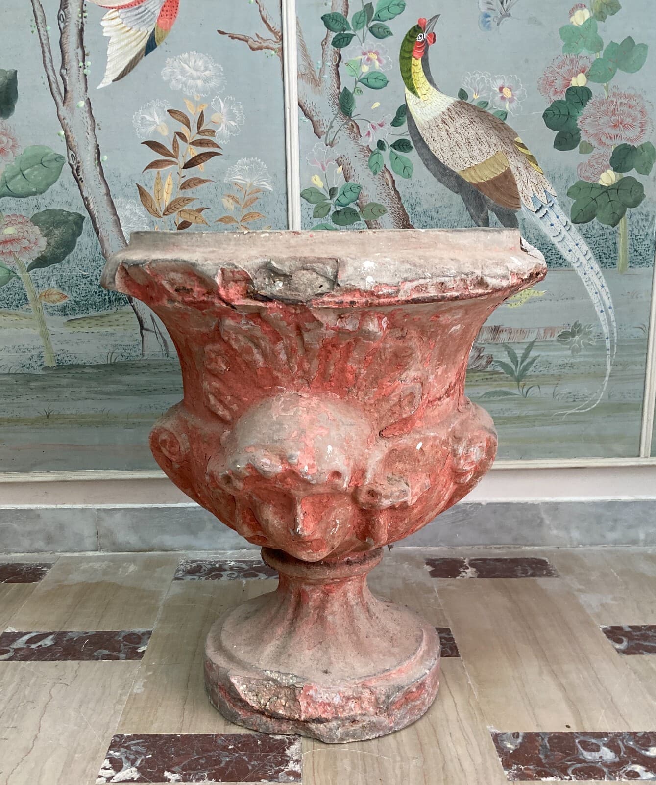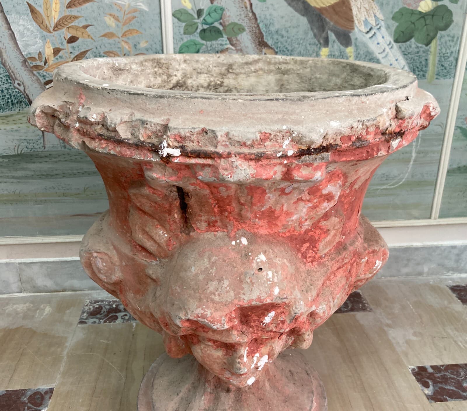 Vaso Decorativo Figurato Per Piante In Cemento, Anni '30