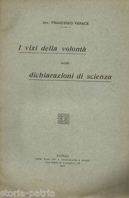 Francesco Ferace, I Vizi Della Volontà Nelle Dichiarazioni Di Scienza Napoli, 1919