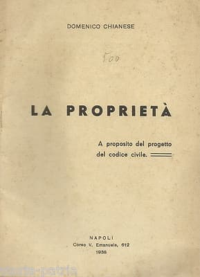 Giuridica: Progetto Di Codice Civile, Economia E Proprietà. Chianese, Napoli, 1938