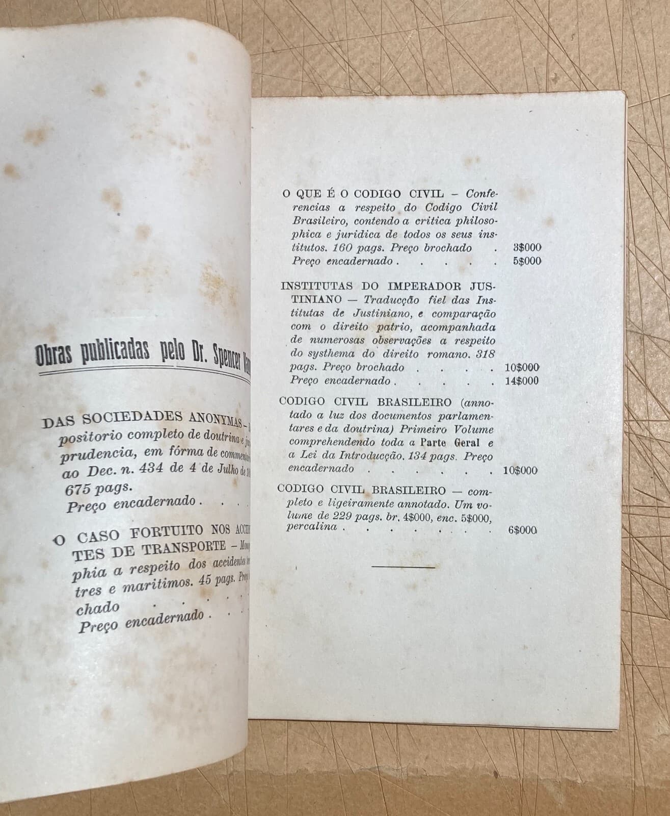 Giuridica Brasile Codice Brasiliano Spencer Vampré Raccolta Di Opinioni 1917