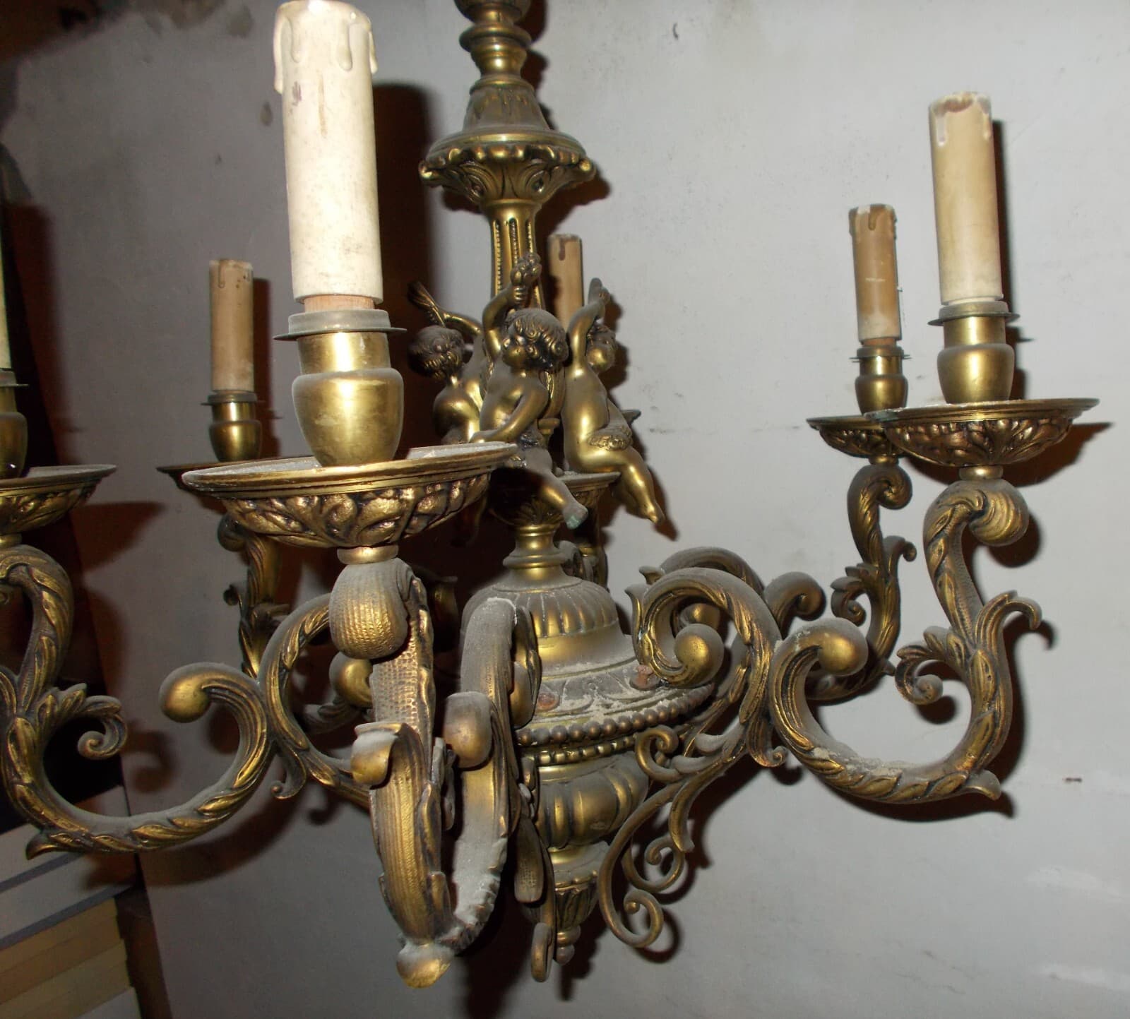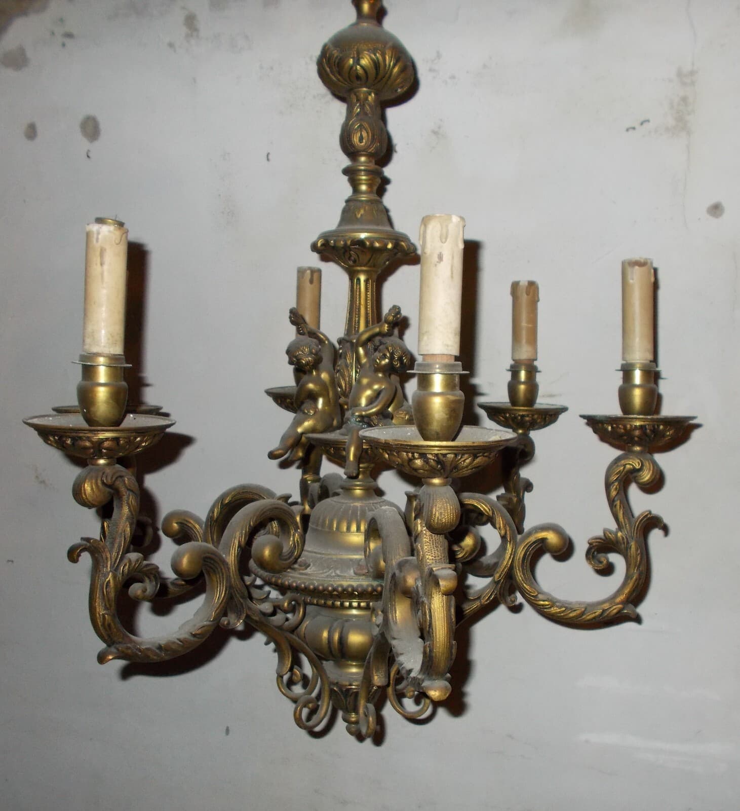 Decorativo Lampadario d'Epoca Con Sculture Di Puttini