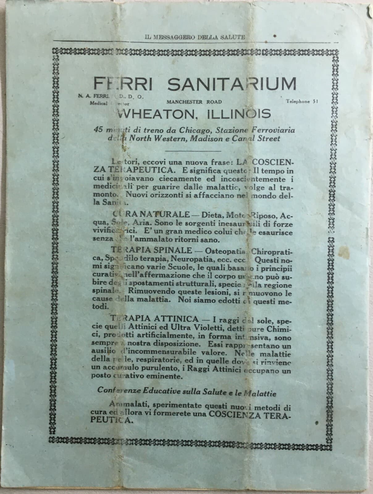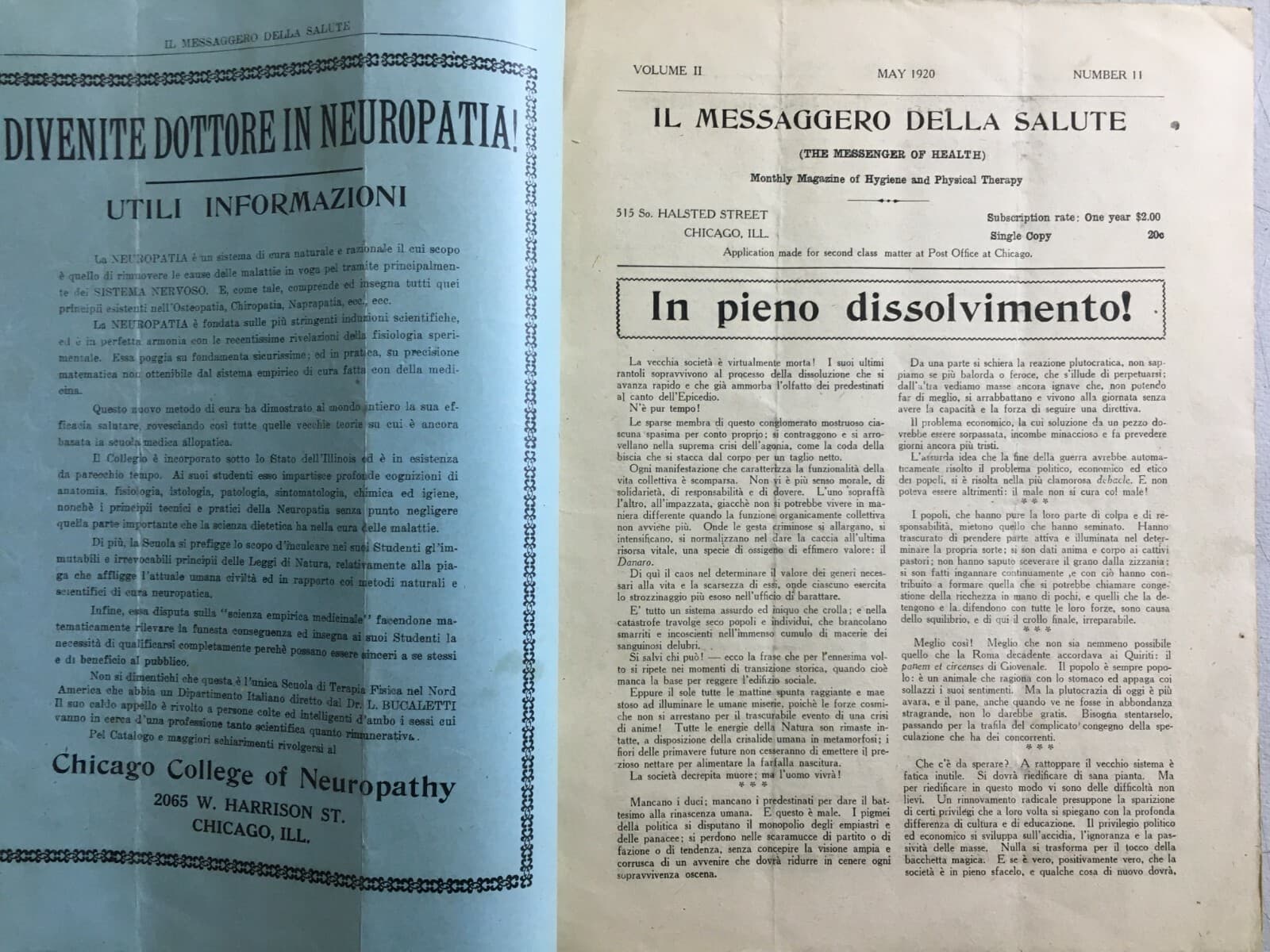 Medicina Alternativa, Osteopatia, Naturopatia, Chiropratica Ed Emigrazione A Chicago (1920)