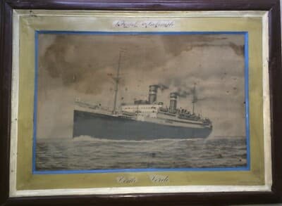 Lloyd Sabaudo, Nave Conte Verde. Grande Veduta Pubblicitaria Su Lamiera Sbalzata