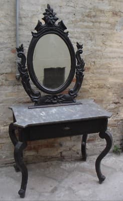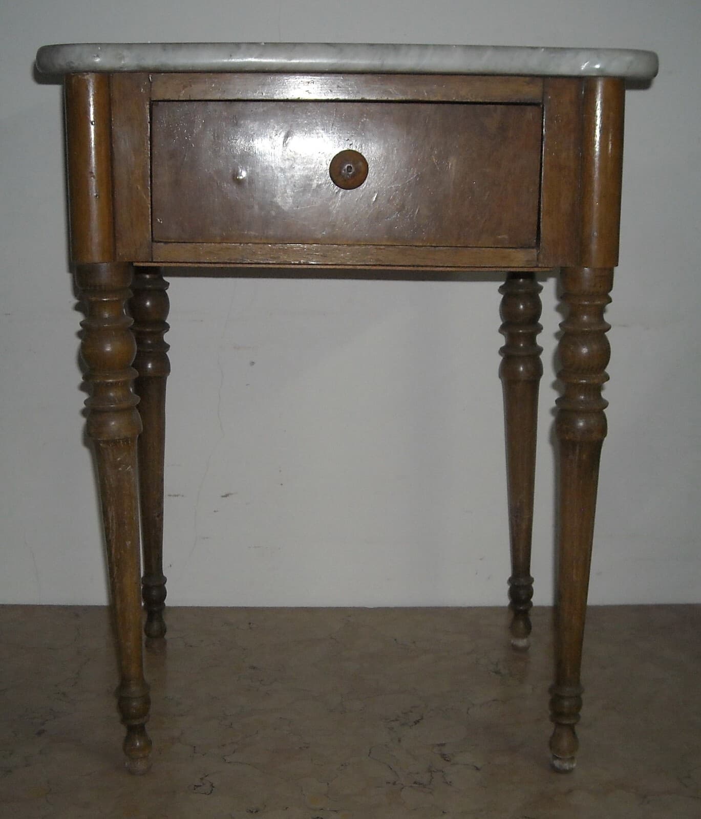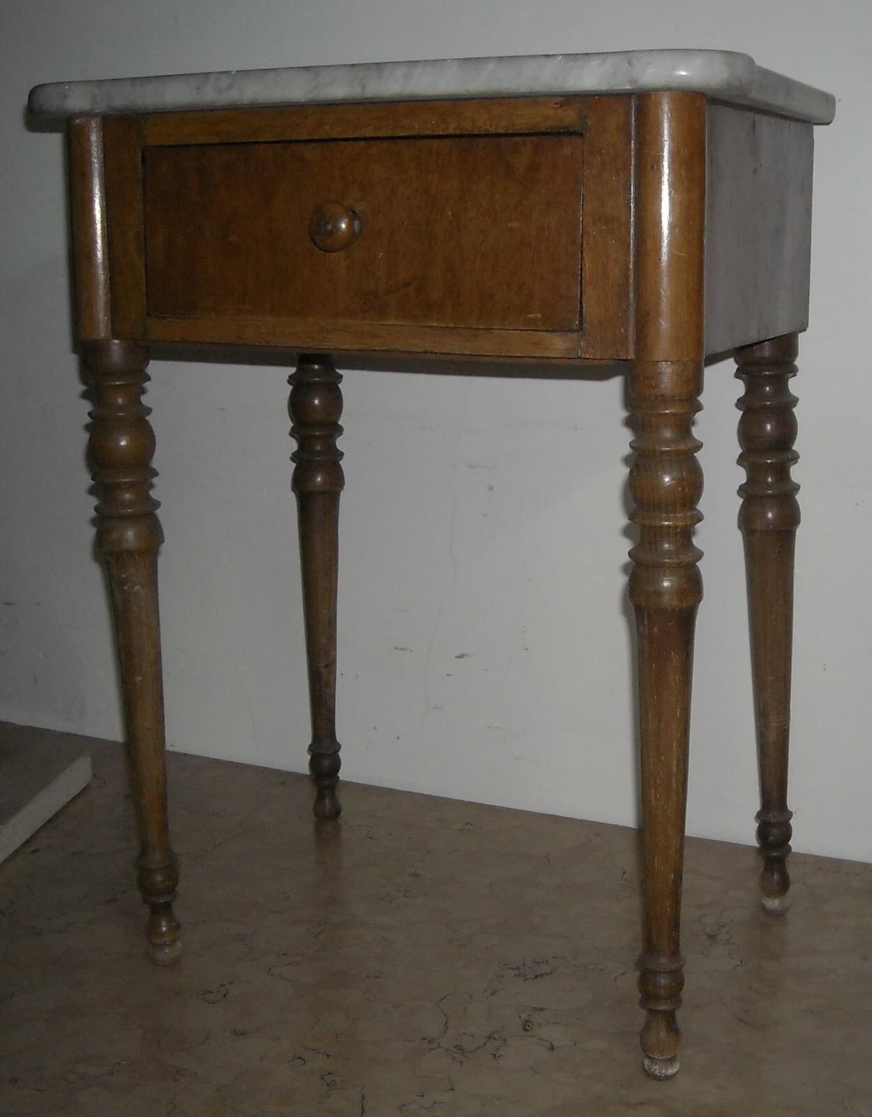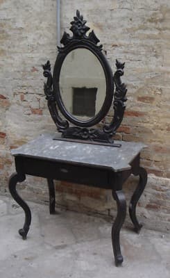 Antica Consolle Toilette In Noce E Marmo, Stile Luigi Filippo