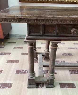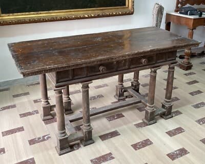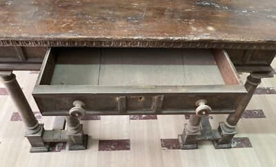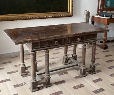 Tavolo Scrittoio Antico Da Restaurare Con Cassetto E Gambe Tornite