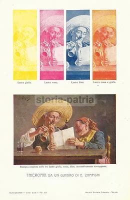 Arte Tipografica: Tecnica Di Stampa, Tricromia. Illustrazione Dipinto Di Eugenio Zampighi, Anni '20