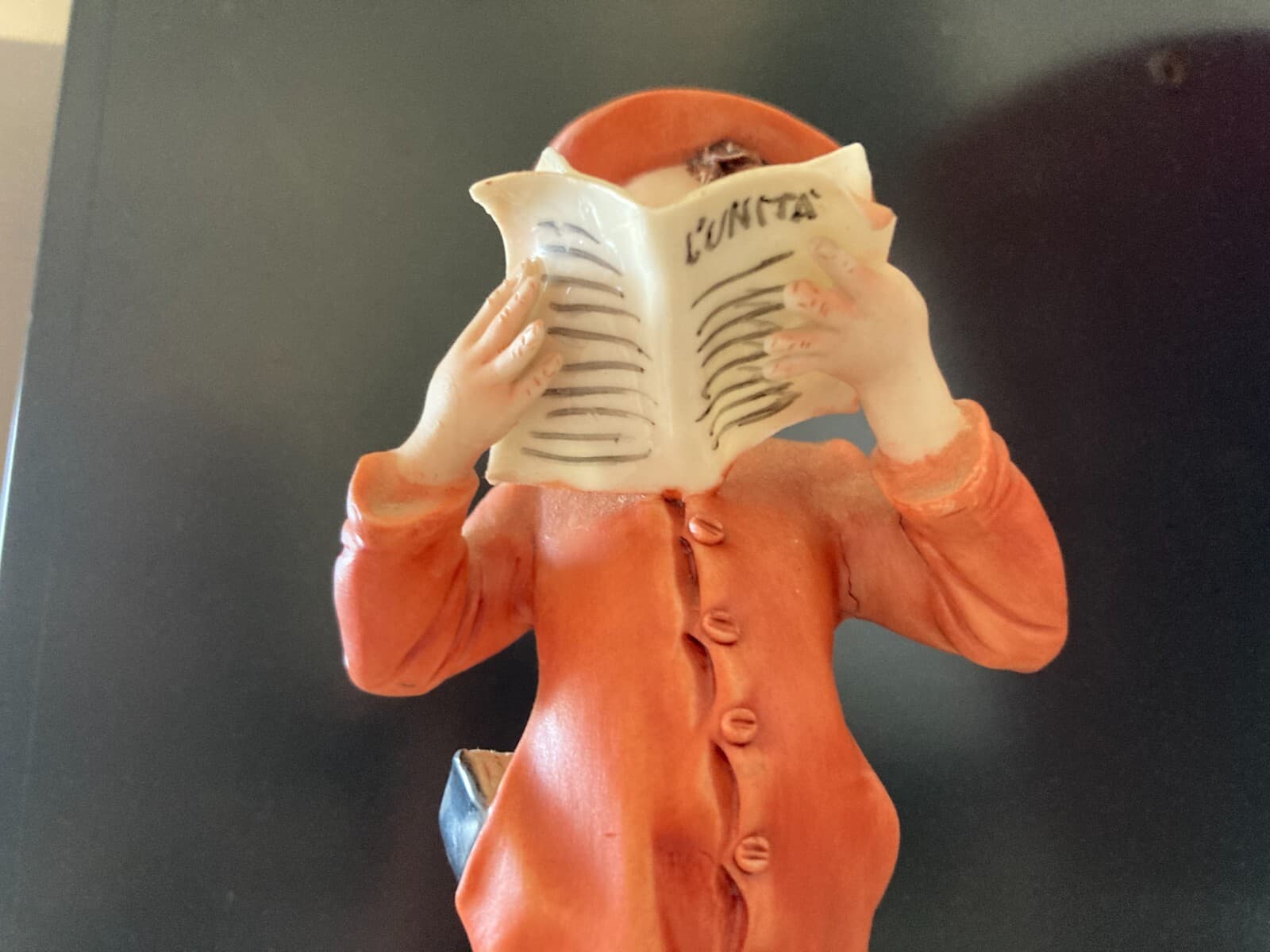 Scultura Satirica In Porcellana Chierichetto Con Giornale L'Unità