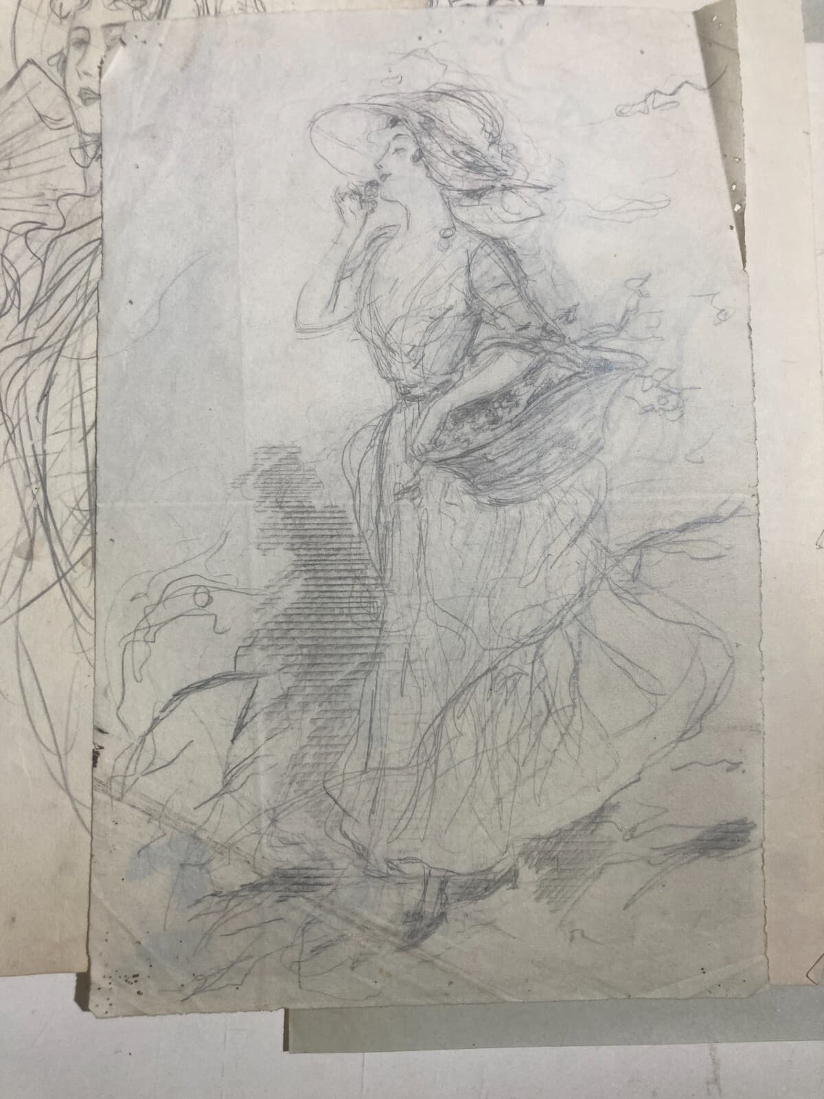 Ninon Vaccarella: Dipinto Ad Acquerello Di Signora In Stile Liberty Con Dedica