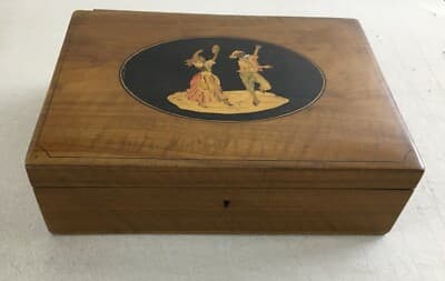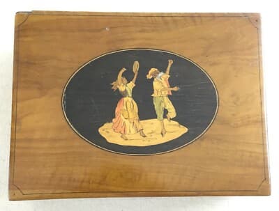 Arte Popolare: Antica Scatola Intarsiata Con Scena Di Tarantella E Tamburello