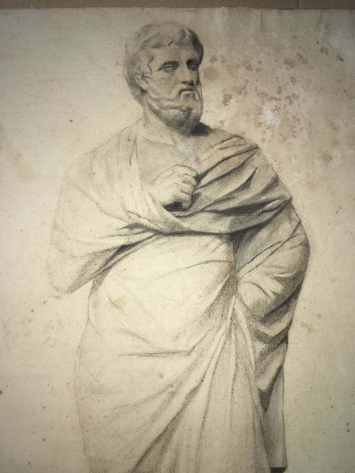 Ritratto Di Sofocle Antico Grande Disegno A Tecnica Mista