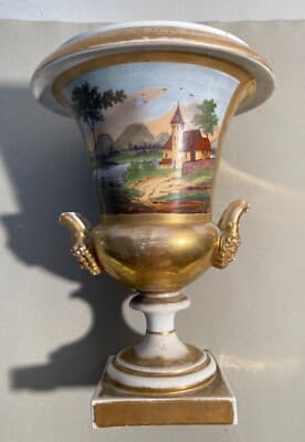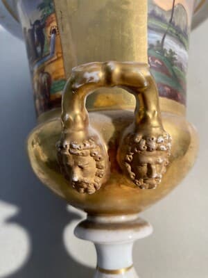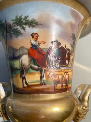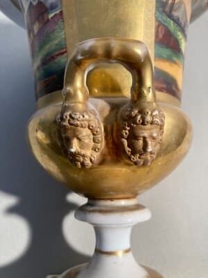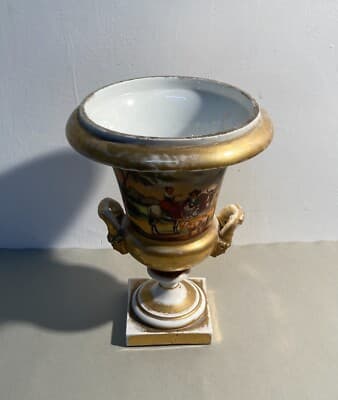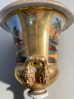 Antico Pregevole Soprammobile: Vaso Con Artistici Dipinti, Neoclassico Dorato, '800